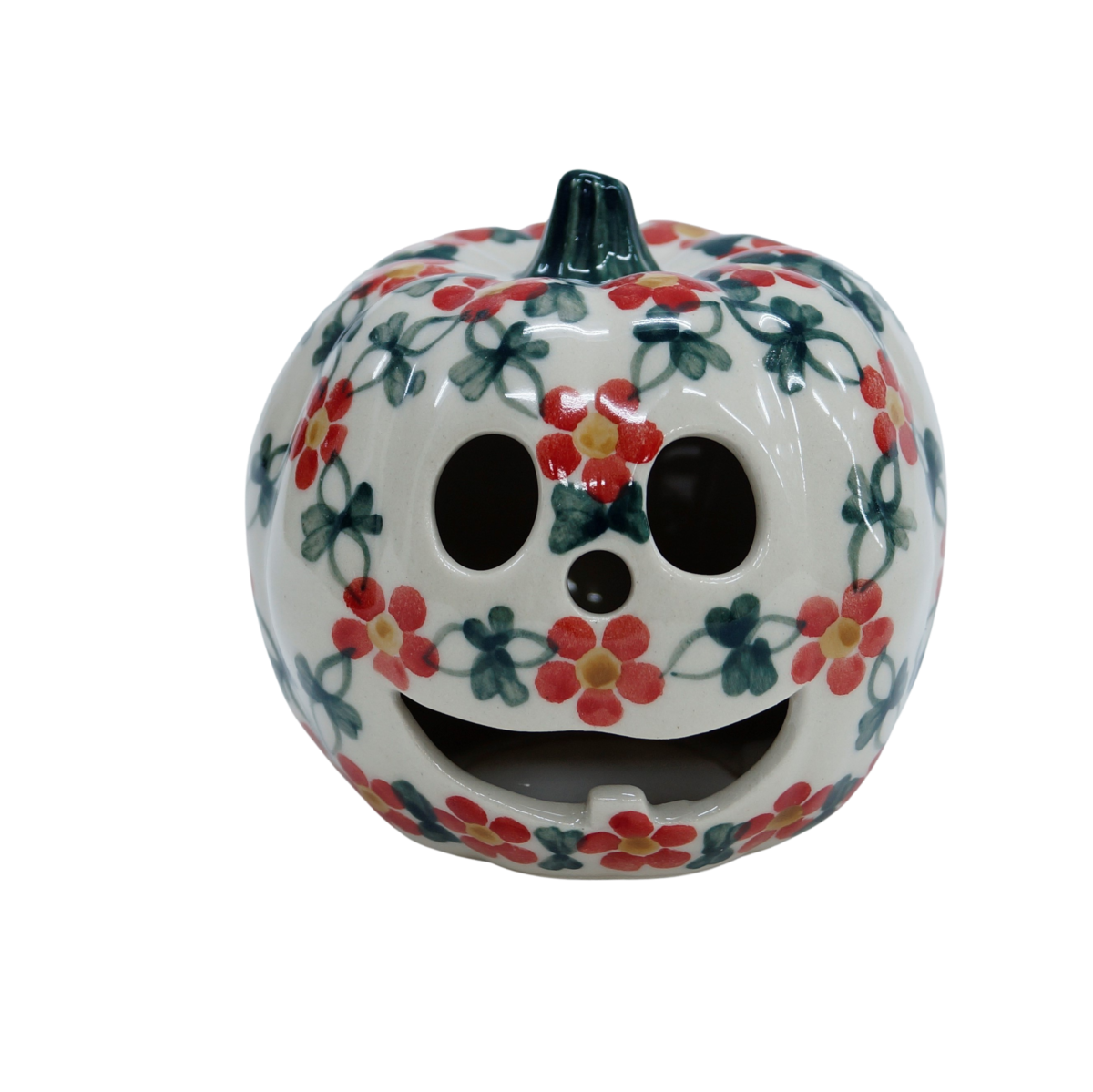 Ozdobna dynia ceramiczna o imieniu Jack (lampion ceramiczny), ręcznie malowana ceramika bolesławiecka to doskonały element dekoracyjny do każdego ogrodu, tarasu lub wnętrza Twojego domu, podczas celebrowania Halloween bądź w okresie jesiennym, kiedy to liście lecą z drzew, roślinność obumiera a nasze śliczne ręcznie wykonane zdobienia ceramiki artystycznej nadają charakteru wystroju Twojego domu.
