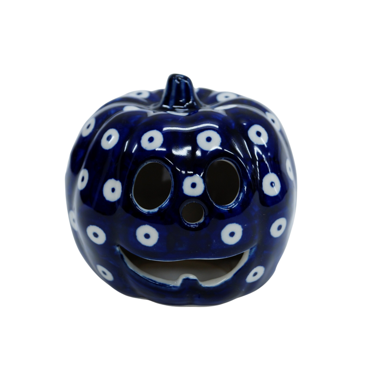Ozdobna dynia ceramiczna o imieniu Jack (lampion ceramiczny), ręcznie malowana ceramika bolesławiecka to doskonały element dekoracyjny do każdego ogrodu, tarasu lub wnętrza Twojego domu, podczas celebrowania Halloween bądź w okresie jesiennym, kiedy to liście lecą z drzew, roślinność obumiera a nasze śliczne ręcznie wykonane zdobienia ceramiki artystycznej nadają charakteru wystroju Twojego domu.