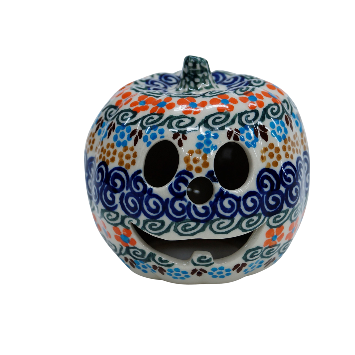 Ozdobna dynia ceramiczna o imieniu Jack (lampion ceramiczny), ręcznie malowana ceramika bolesławiecka to doskonały element dekoracyjny do każdego ogrodu, tarasu lub wnętrza Twojego domu, podczas celebrowania Halloween bądź w okresie jesiennym, kiedy to liście lecą z drzew, roślinność obumiera a nasze śliczne ręcznie wykonane zdobienia ceramiki artystycznej nadają charakteru wystroju Twojego domu.