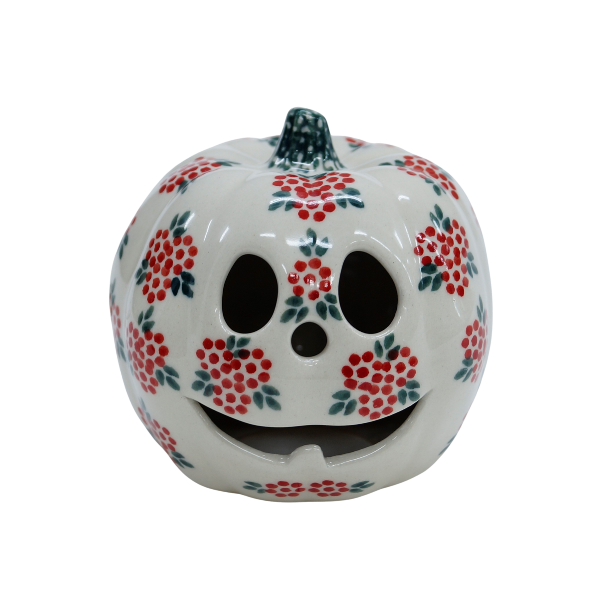 Ozdobna dynia ceramiczna o imieniu Jack (lampion ceramiczny), ręcznie malowana ceramika bolesławiecka to doskonały element dekoracyjny do każdego ogrodu, tarasu lub wnętrza Twojego domu, podczas celebrowania Halloween bądź w okresie jesiennym, kiedy to liście lecą z drzew, roślinność obumiera a nasze śliczne ręcznie wykonane zdobienia ceramiki artystycznej nadają charakteru wystroju Twojego domu.