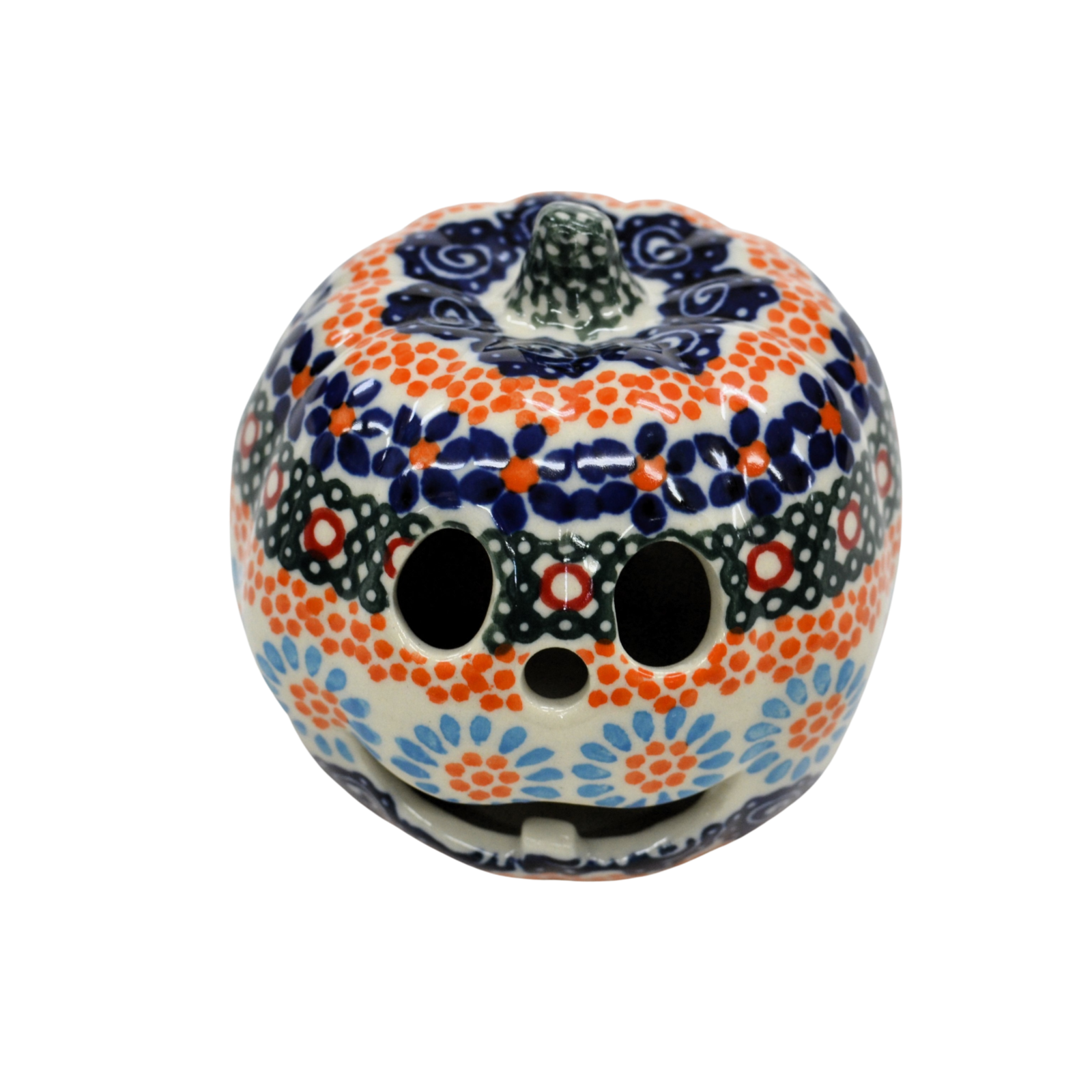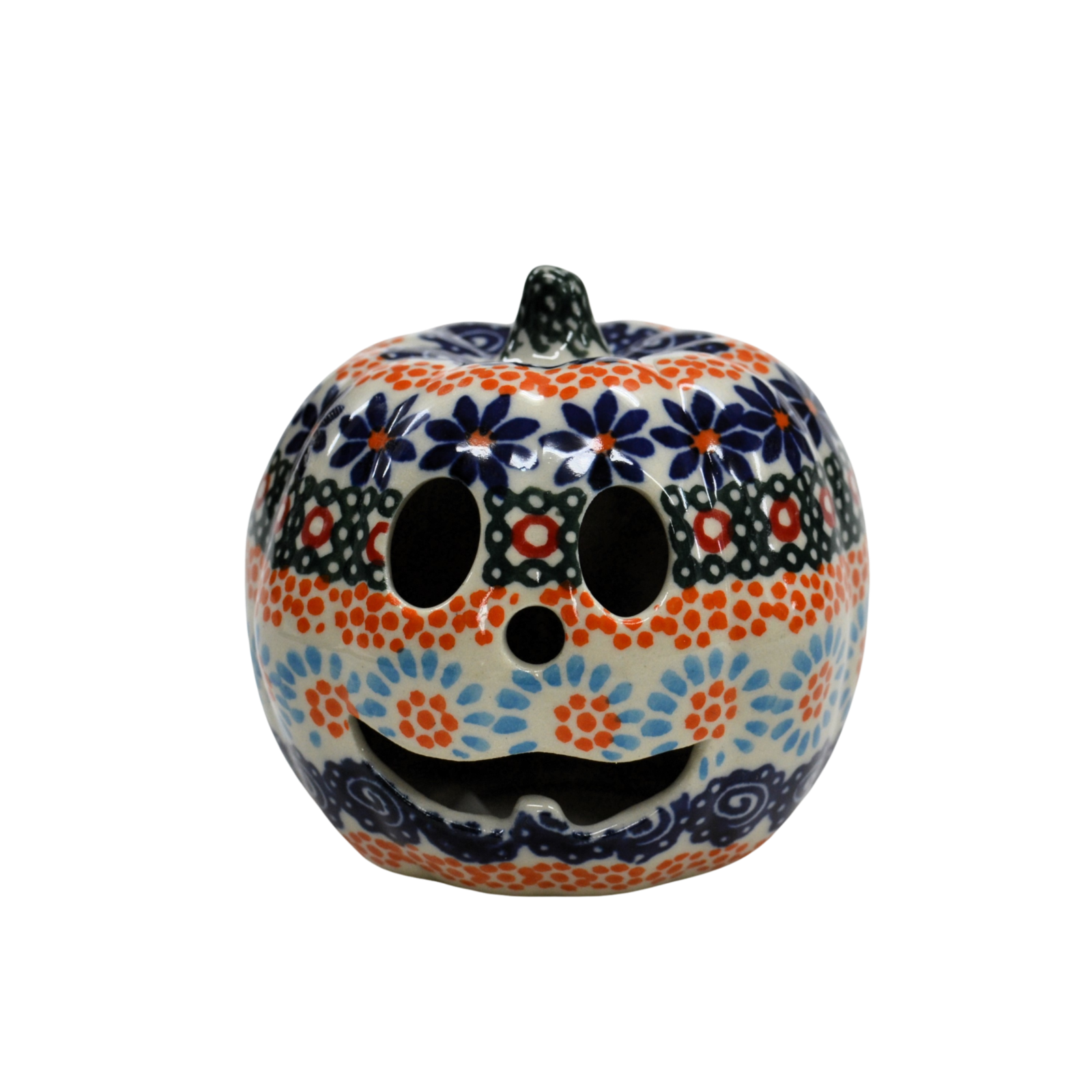 Ozdobna dynia ceramiczna o imieniu Jack (lampion ceramiczny), ręcznie malowana ceramika bolesławiecka to doskonały element dekoracyjny do każdego ogrodu, tarasu lub wnętrza Twojego domu, podczas celebrowania Halloween bądź w okresie jesiennym, kiedy to liście lecą z drzew, roślinność obumiera a nasze śliczne ręcznie wykonane zdobienia ceramiki artystycznej nadają charakteru wystroju Twojego domu.