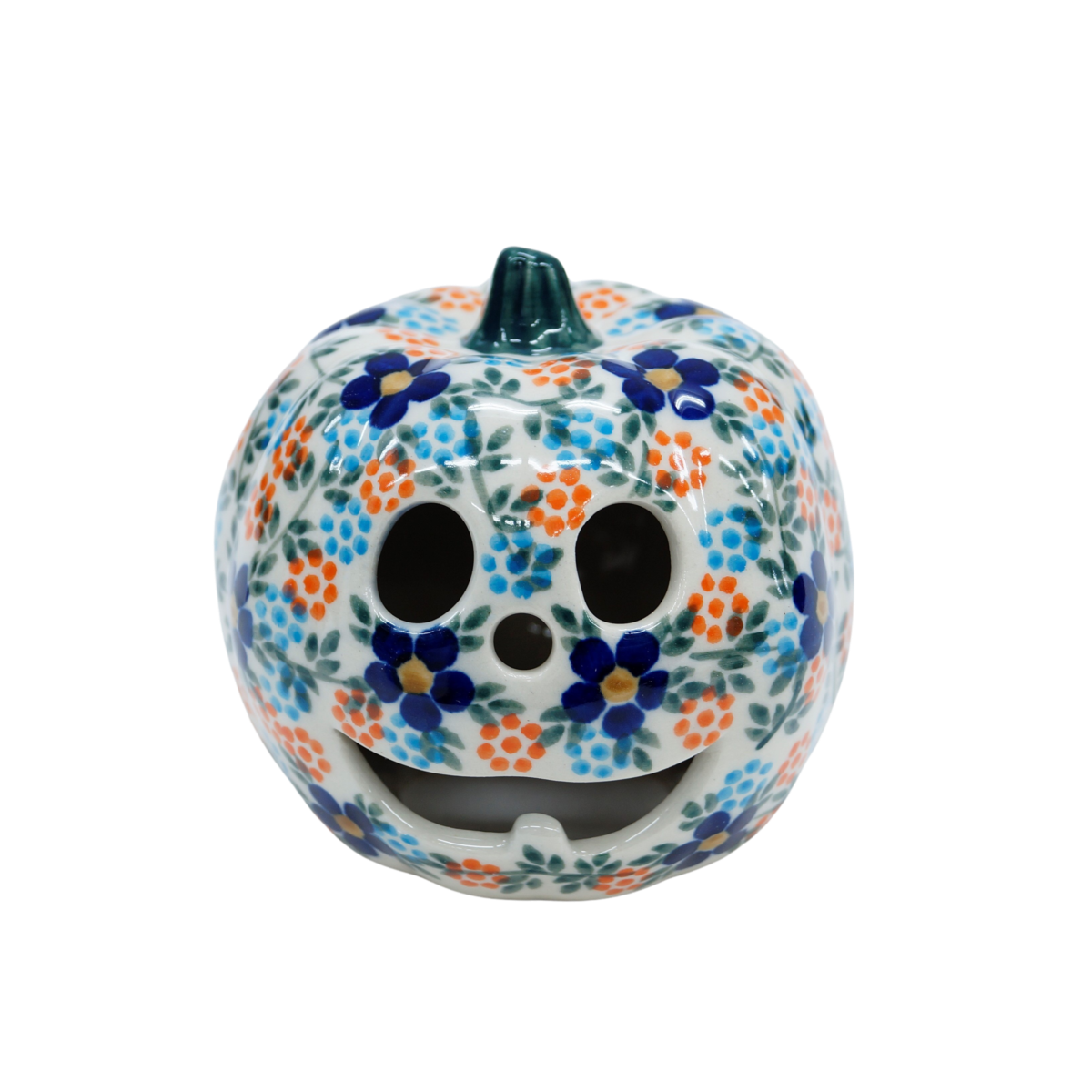 Ozdobna dynia ceramiczna o imieniu Jack (lampion ceramiczny), ręcznie malowana ceramika bolesławiecka to doskonały element dekoracyjny do każdego ogrodu, tarasu lub wnętrza Twojego domu, podczas celebrowania Halloween bądź w okresie jesiennym, kiedy to liście lecą z drzew, roślinność obumiera a nasze śliczne ręcznie wykonane zdobienia ceramiki artystycznej nadają charakteru wystroju Twojego domu.