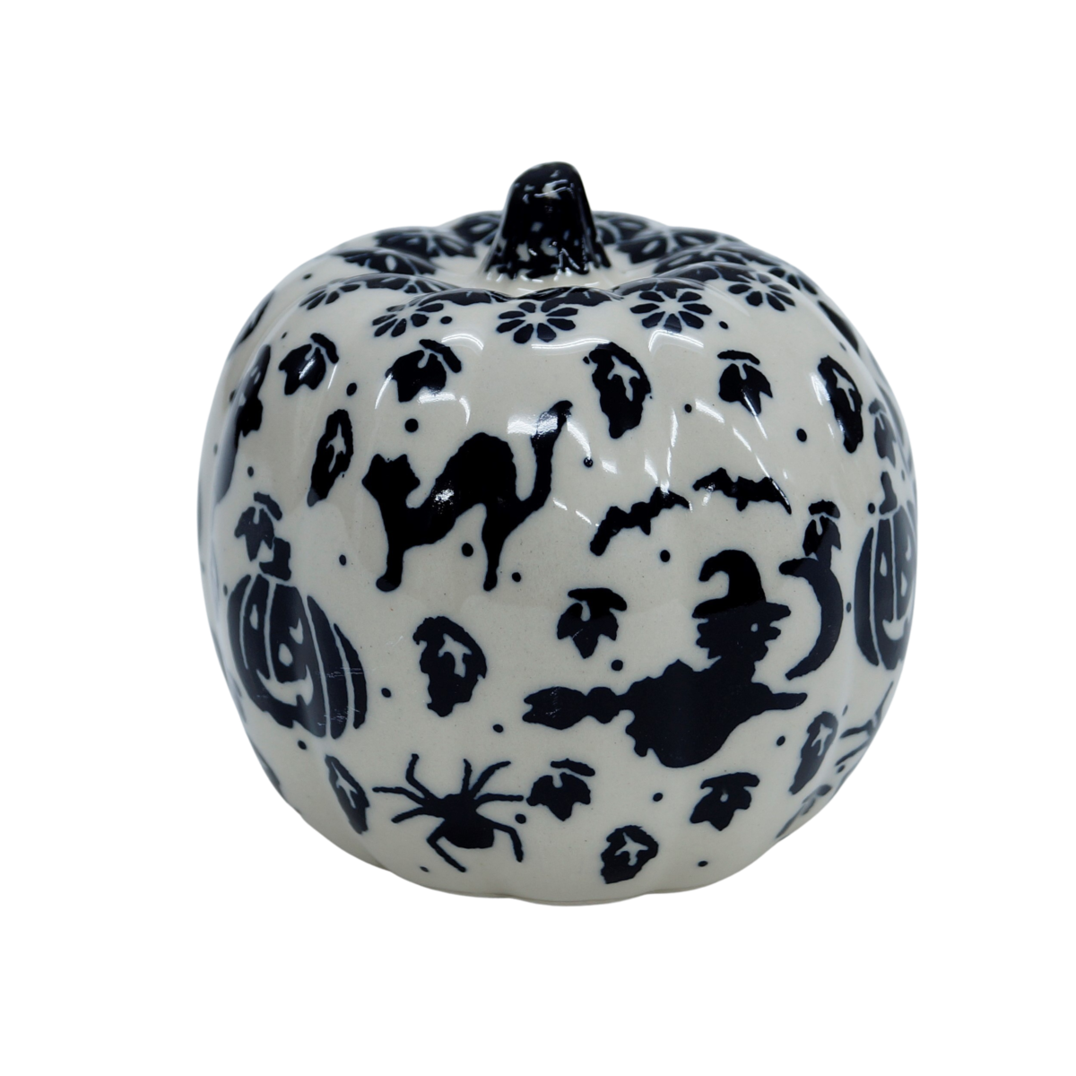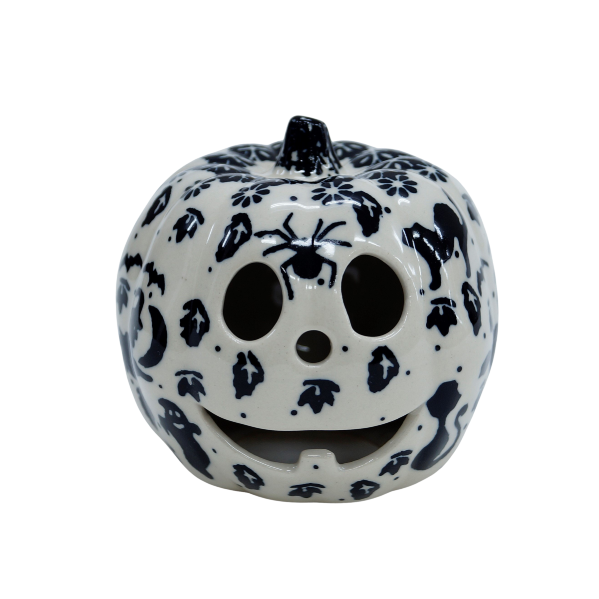 Ozdobna dynia ceramiczna o imieniu Jack (lampion ceramiczny), ręcznie malowana ceramika bolesławiecka to doskonały element dekoracyjny do każdego ogrodu, tarasu lub wnętrza Twojego domu, podczas celebrowania Halloween bądź w okresie jesiennym, kiedy to liście lecą z drzew, roślinność obumiera a nasze śliczne ręcznie wykonane zdobienia ceramiki artystycznej nadają charakteru wystroju Twojego domu.
