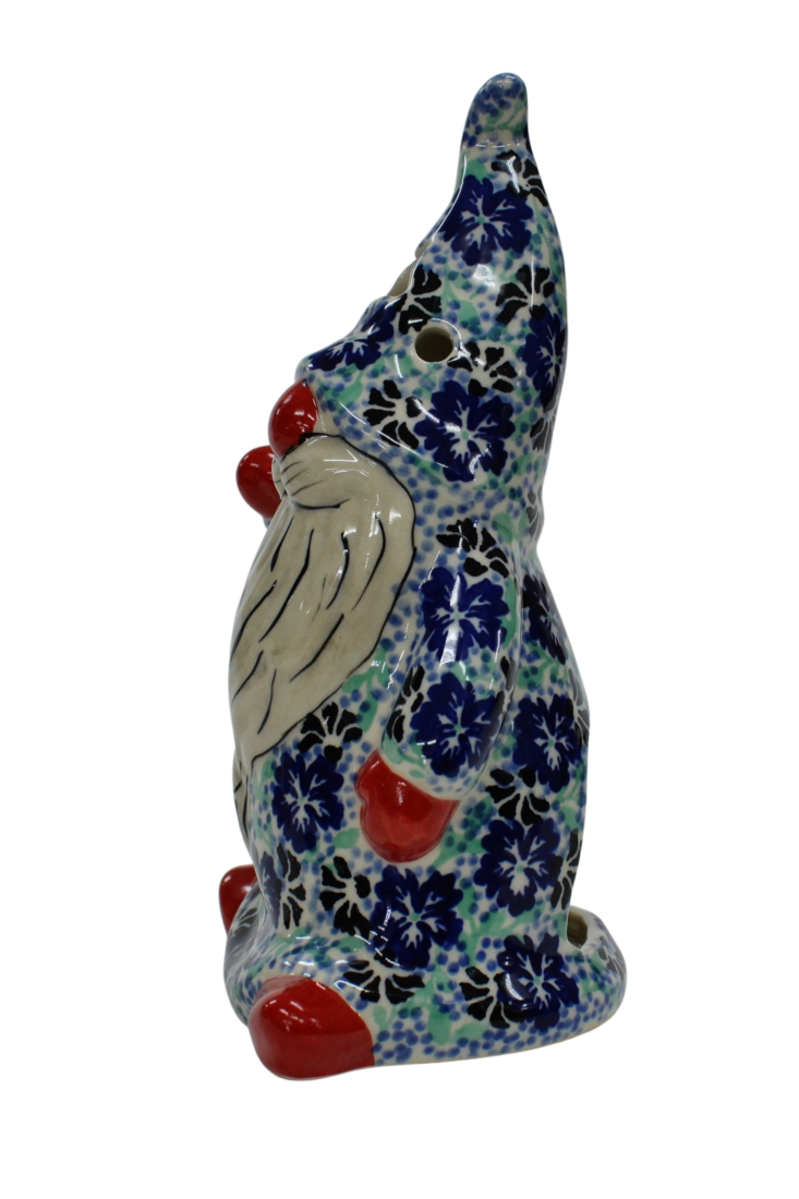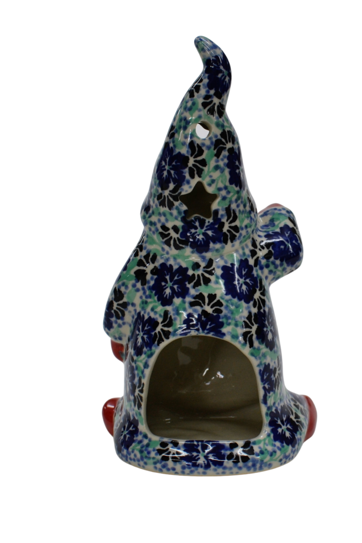 Pięknie, ręcznie dekorowany podszkliwnie Skrzat, o imieniu ANDY. Gnom okryty czapką, która okrywa jego twarz podkreślając zmarznięty w mroźny poranek czerwony nos. Wycięte w czapce gwiazdki i okrągłe otwory będą rozświetlać każde pomieszczenie dzięki świeczce (żarówce LED), którą możesz umieścić wewnątrz skrzata, dzięki otworowi do umieszczenia świeczki.