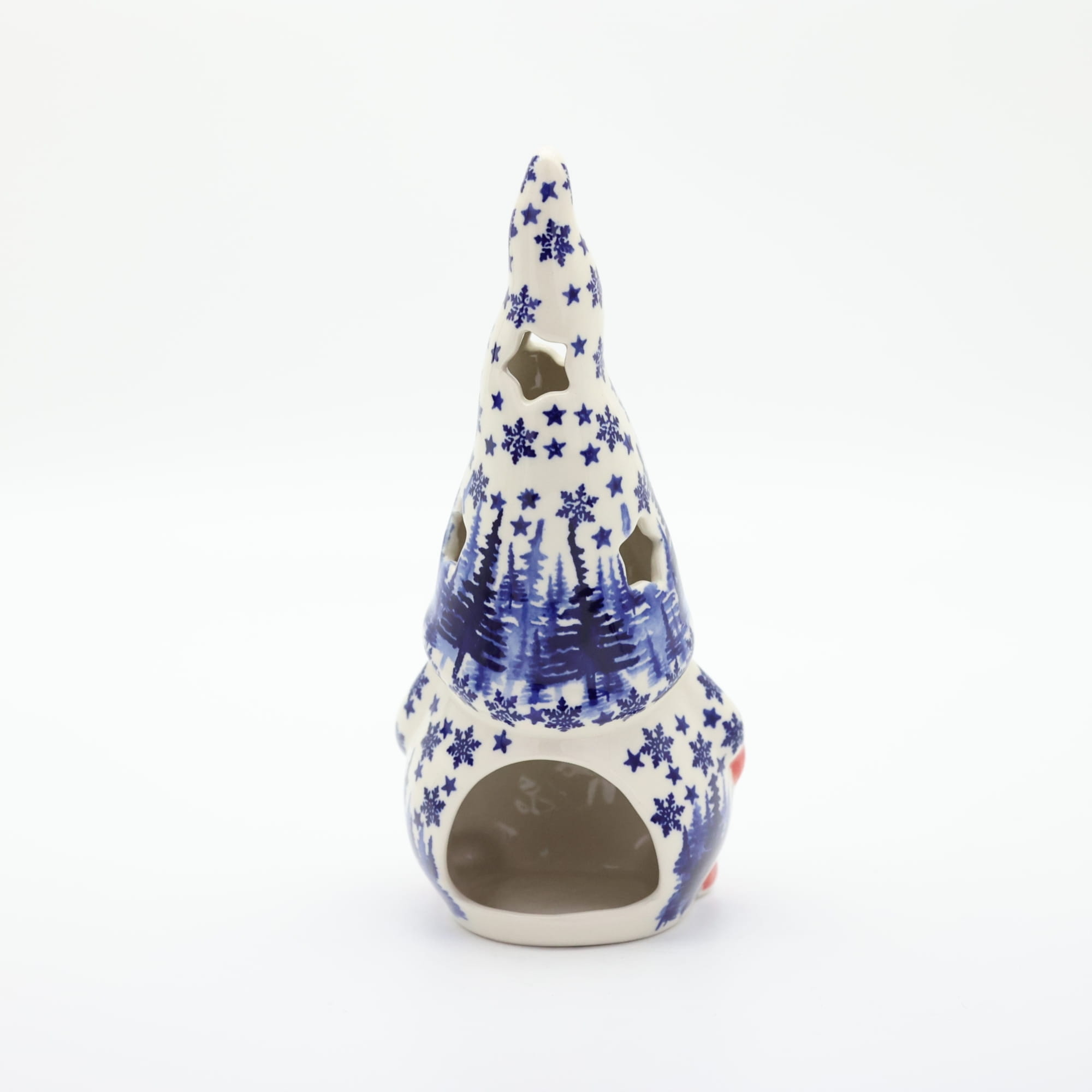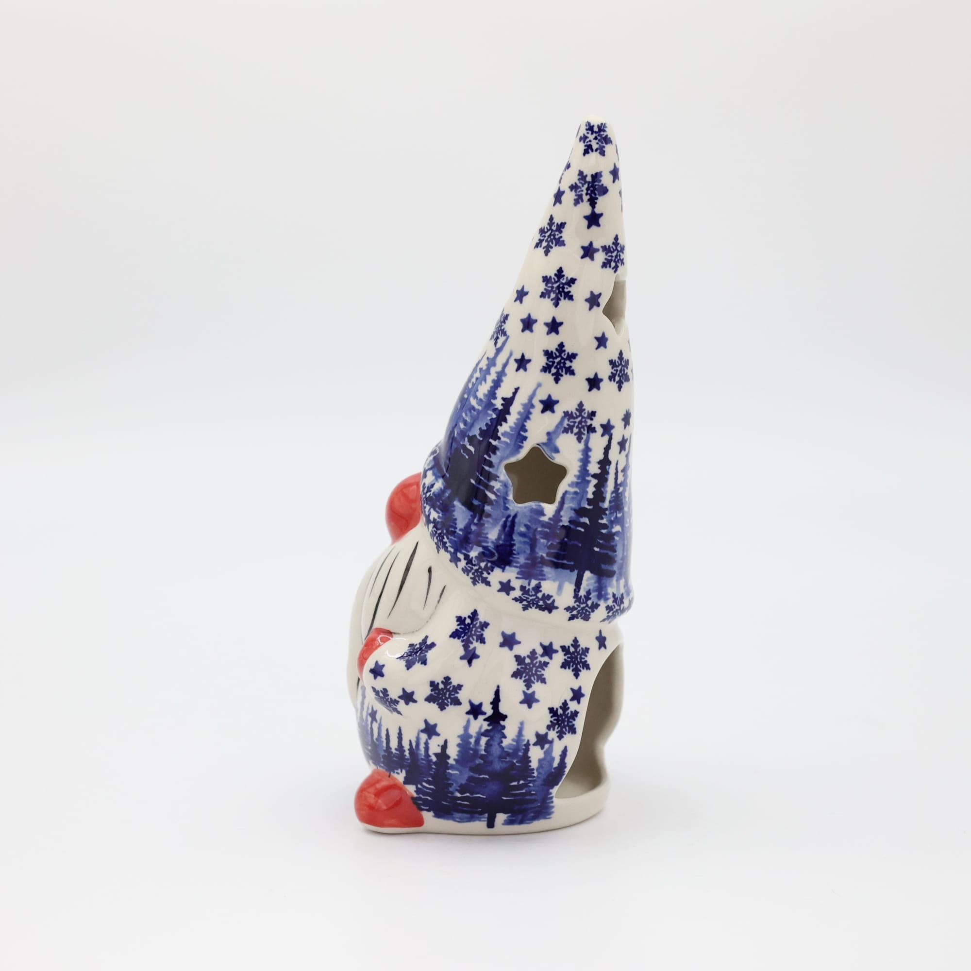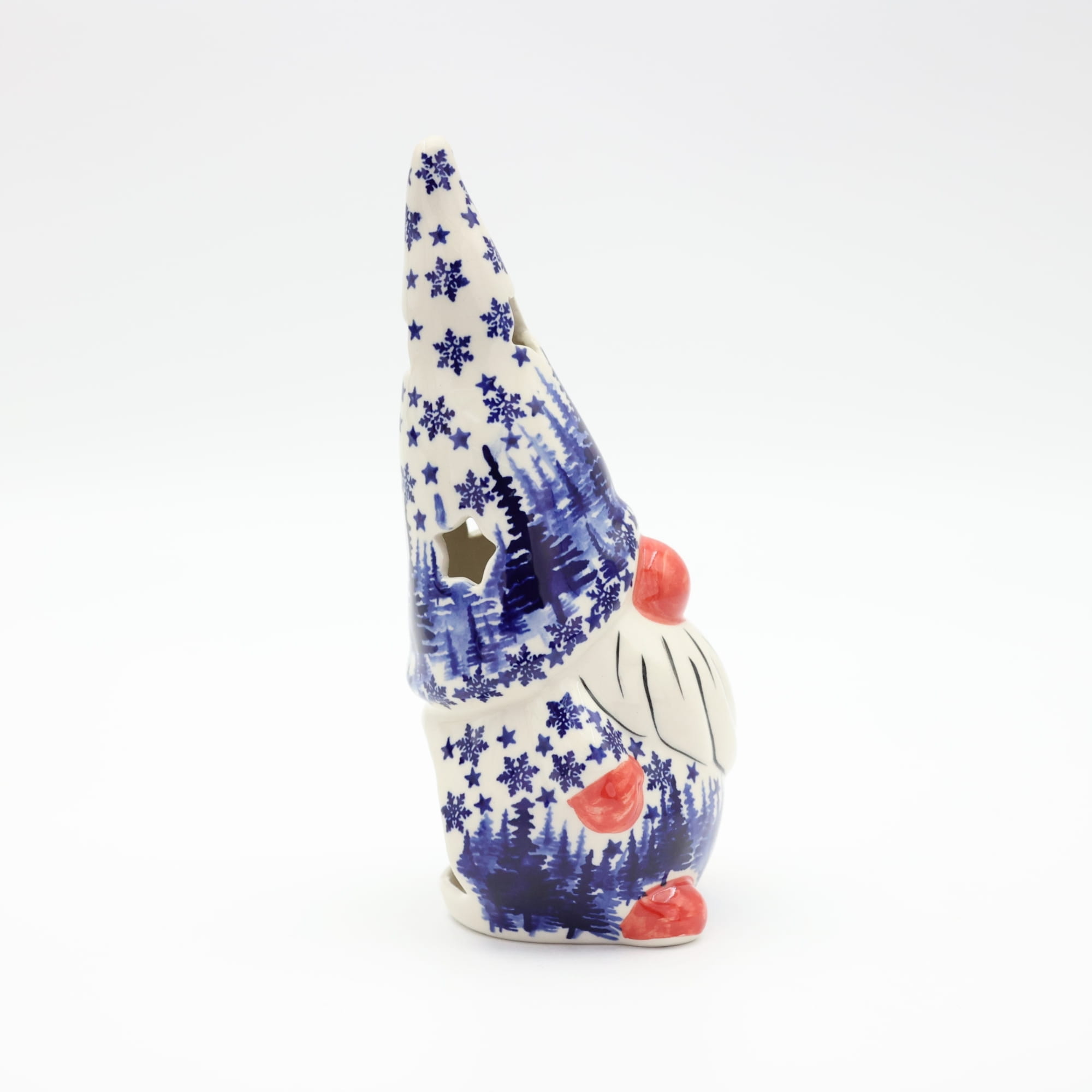 Pięknie, ręcznie dekorowany podszkliwnie Skrzat, o imieniu ANDY. Gnom okryty czapką, która okrywa jego twarz podkreślając zmarznięty w mroźny poranek czerwony nos. Wycięte w czapce gwiazdki i okrągłe otwory będą rozświetlać każde pomieszczenie dzięki świeczce (żarówce LED), którą możesz umieścić wewnątrz skrzata, dzięki otworowi do umieszczenia świeczki.