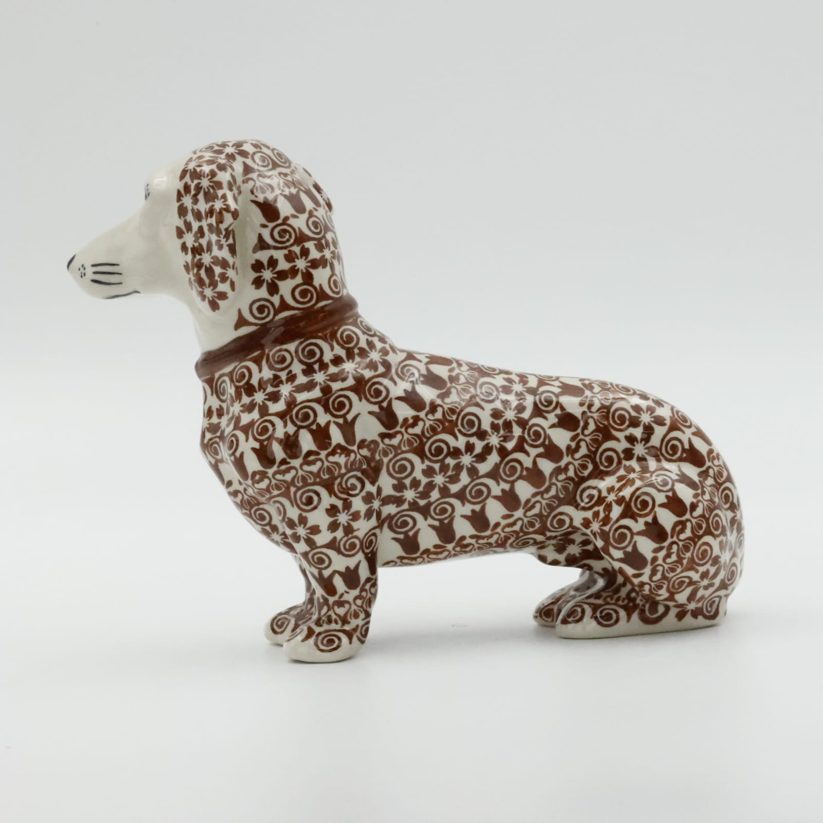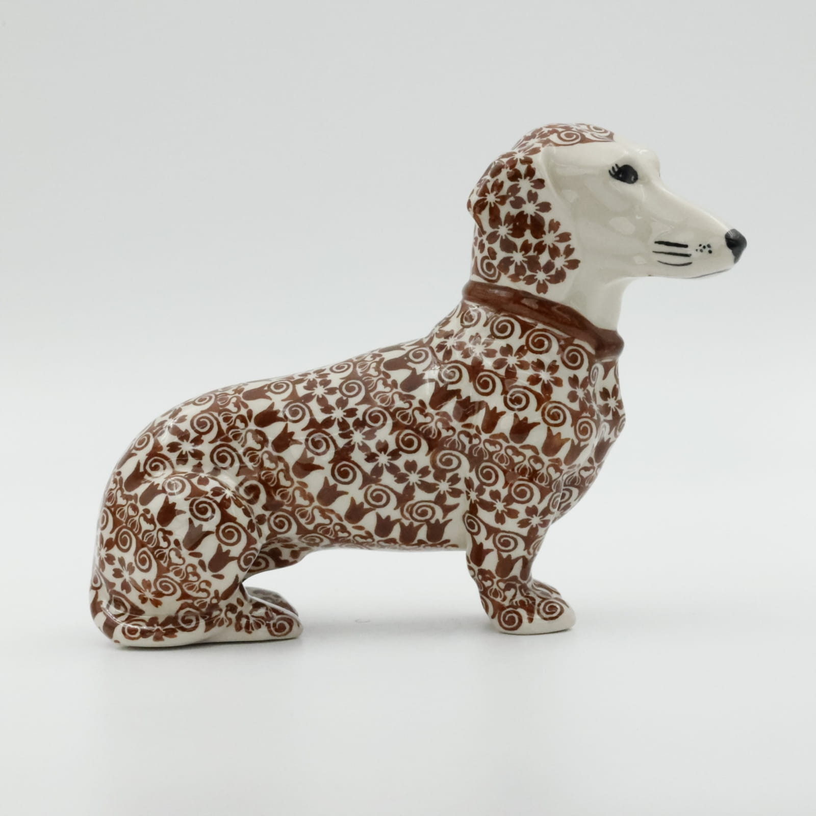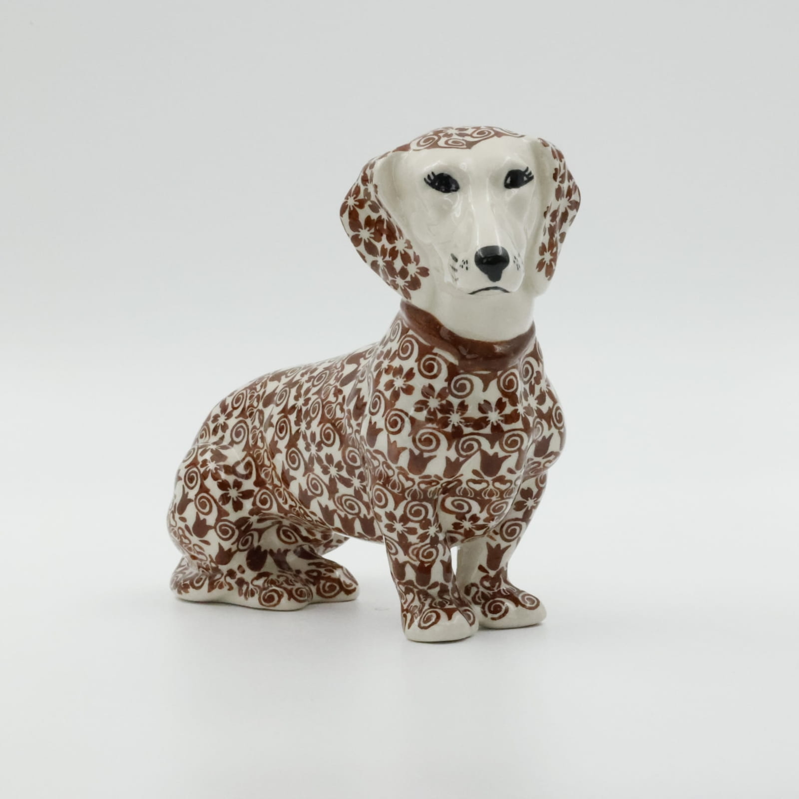 Jamniki to bardzo radosne psy, znane ze skłonności do polowań, ścigania zwierząt i ptaków. W naszej manufakturze jamniki ceramiczne są pełne radości a kolorowe dekoracje podkreślają ich psią, wesołą naturę.