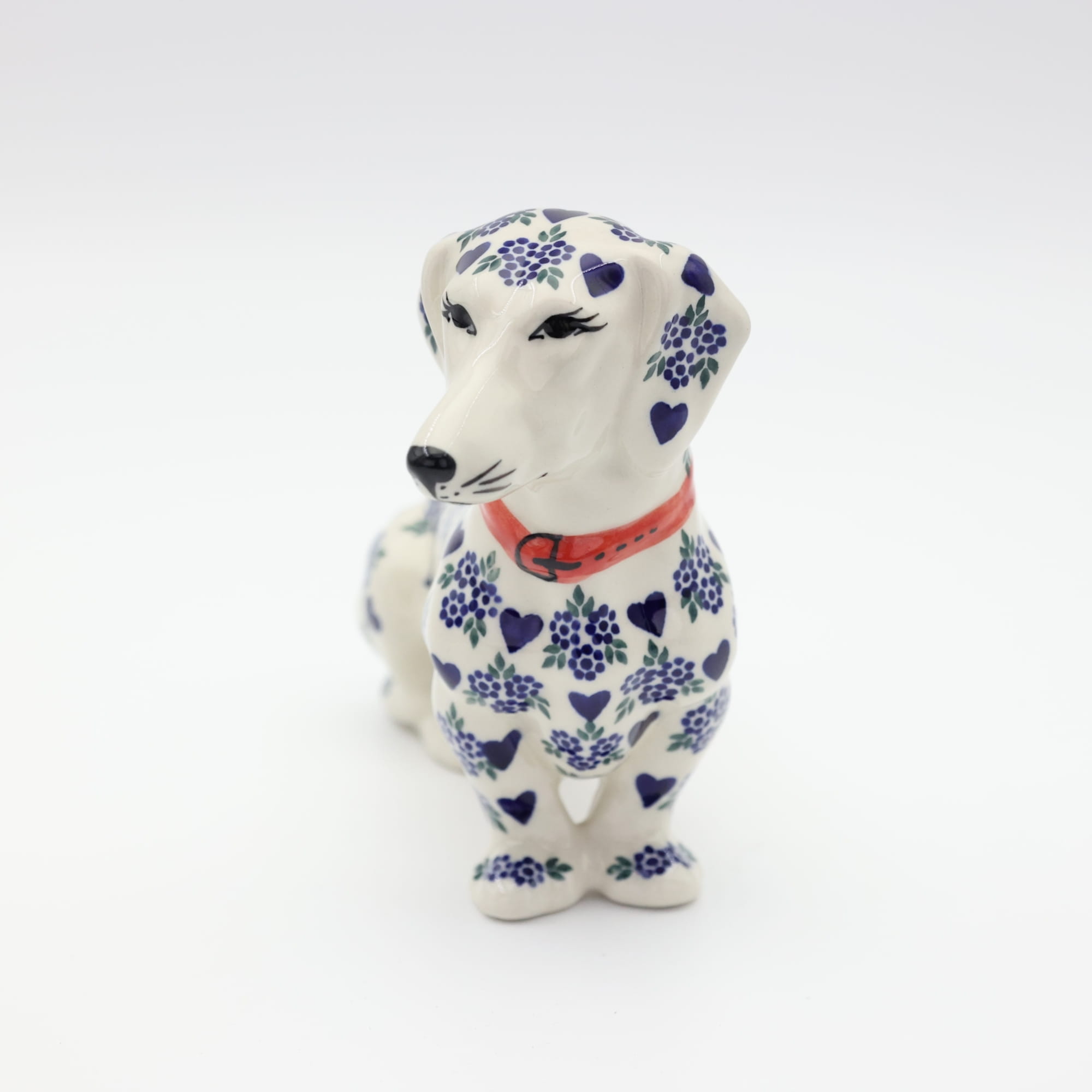 Figurka psa jamnika o długości aż 25 cm, powstała z myślą o jamniku Kajtku, który przed laty każdego dnia witał klientów w naszej fabryce. Niestety odszedł już za tęczowy most i został wspomnieniem i inspiracją do stworzenia produktu dekoracyjnego.