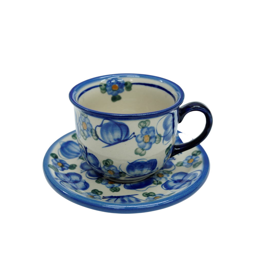 Piękna filiżanka ceramiczna 200 ml ze spodkiem – ręcznie zdobiona ceramika Bolesławiec.