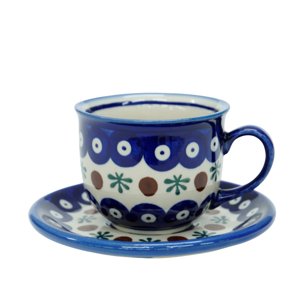 Piękna filiżanka ceramiczna 200 ml ze spodkiem – ręcznie zdobiona ceramika Bolesławiec.