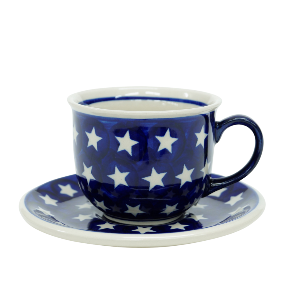 Piękna filiżanka ceramiczna 200 ml ze spodkiem – ręcznie zdobiona ceramika Bolesławiec.