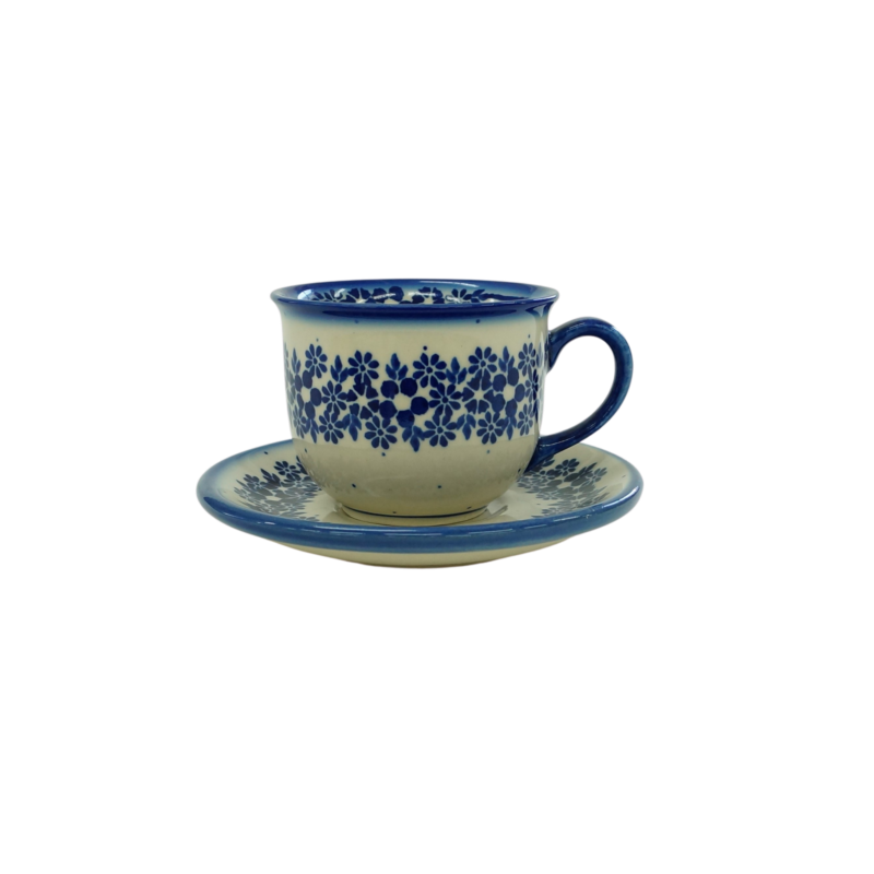 Piękna filiżanka ceramiczna 200 ml ze spodkiem – ręcznie zdobiona ceramika Bolesławiec.