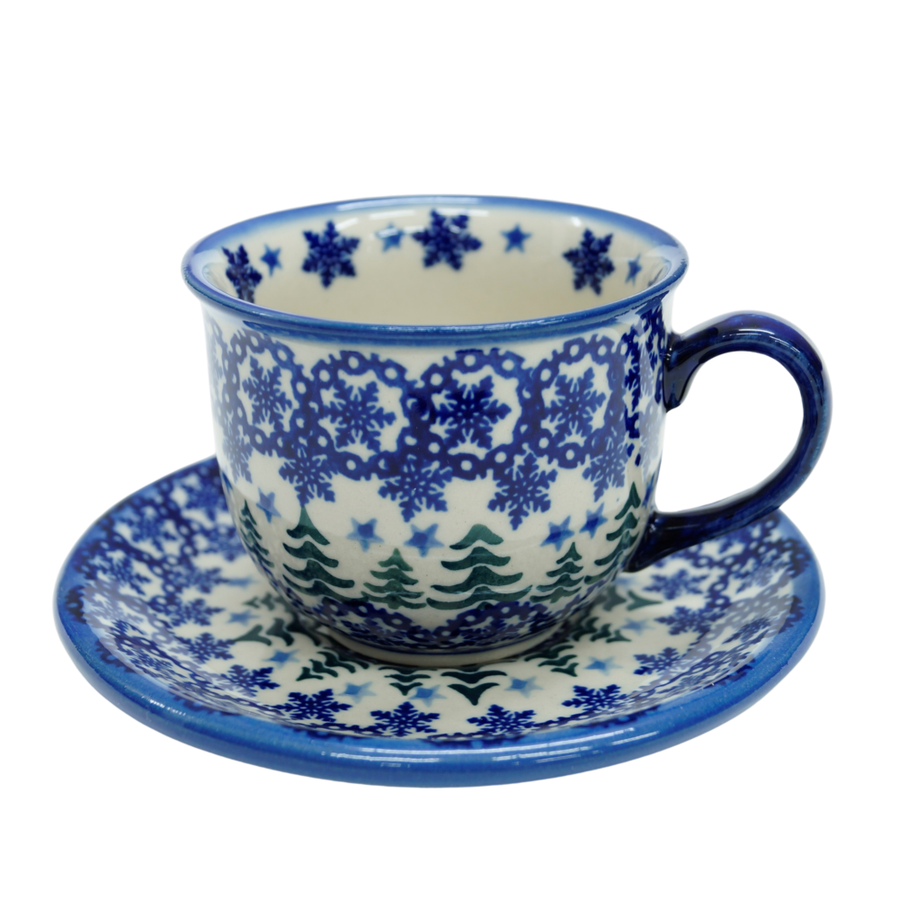 Piękna filiżanka ceramiczna 200 ml ze spodkiem – ręcznie zdobiona ceramika Bolesławiec.