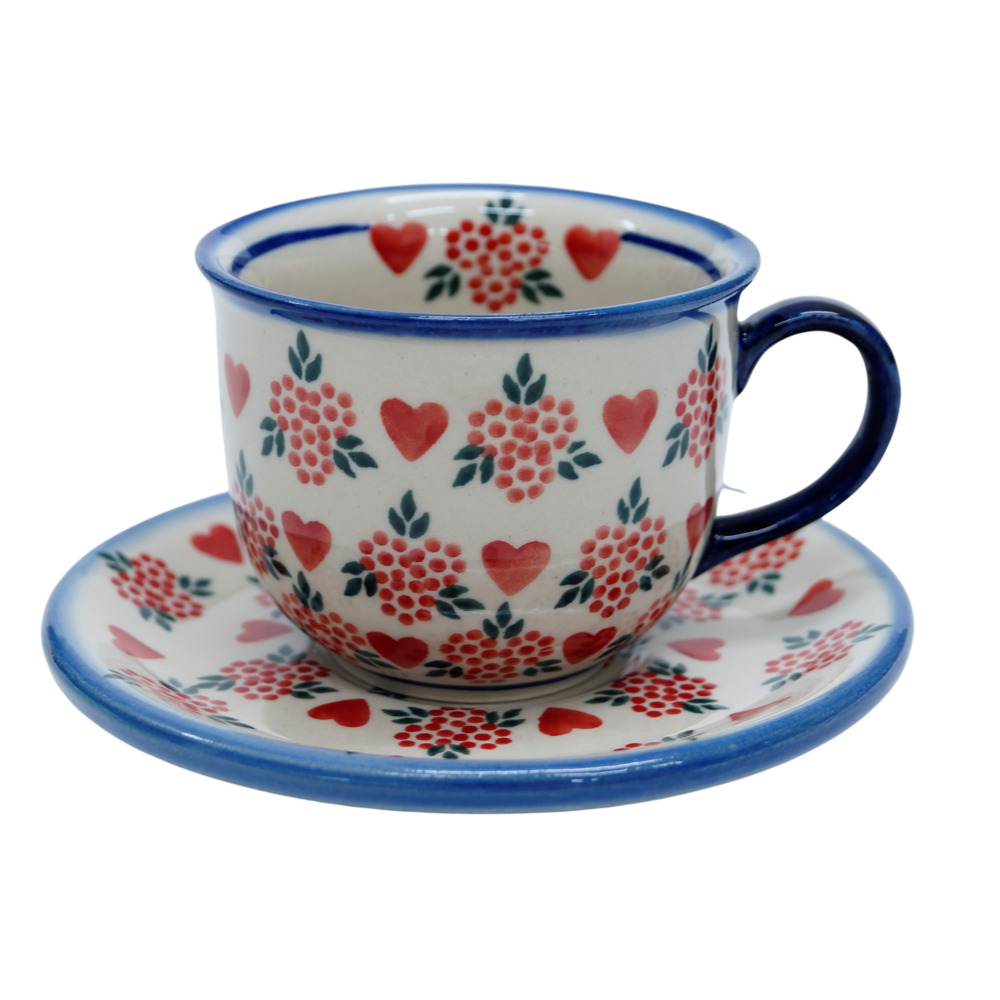 Piękna filiżanka ceramiczna 200 ml ze spodkiem – ręcznie zdobiona ceramika Bolesławiec.