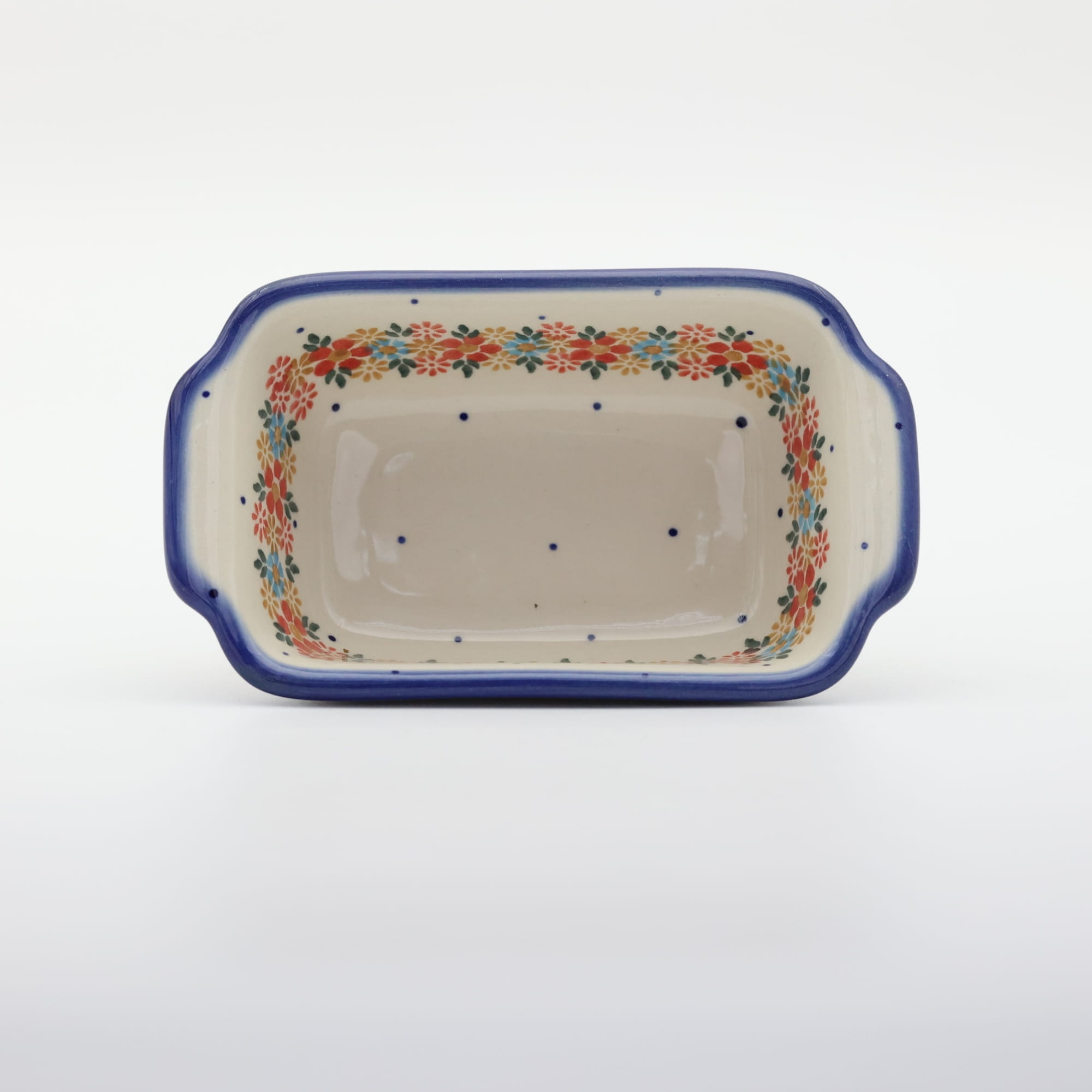 Oryginalny produkt ceramiki bolesławieckiej - ręcznie zdobiona forma ceramiczna z uszami do pieczenia chleba I, idealna do przygotowywania i zapiekania domowych wypieków, chlebów czy ciast oraz wszelkich pasztetów.