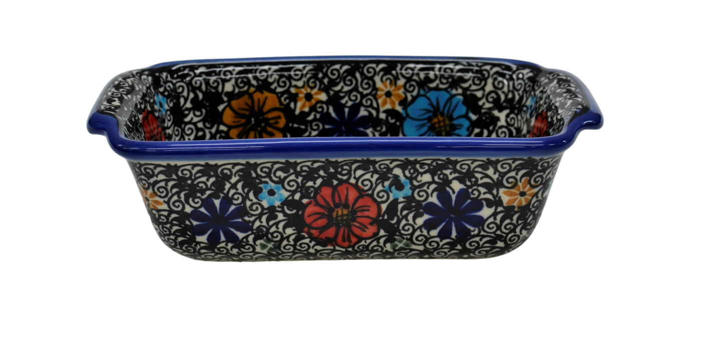 Forma ceramiczna do pieczenia chleba, zapiekania pasztetów jak i przygotowywania pysznych zapiekanek oraz wyrafinowanych dań warzywnych, będzie służyć w Twojej kuchni przez wiele lat. Barwne i oryginalne zdobienia podszkliwne stempelkowe i piękne motywy kwiatowe, nadadzą charakteru serwowanym posiłkom.