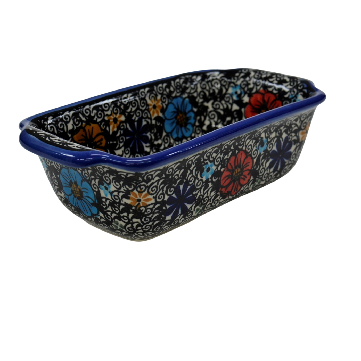 Oryginalny produkt ceramiki bolesławieckiej - ręcznie zdobiona forma ceramiczna z uszami do pieczenia chleba II, idealna do przygotowywania i zapiekania domowych wypieków, chlebów czy ciast oraz wszelkich pasztetów.