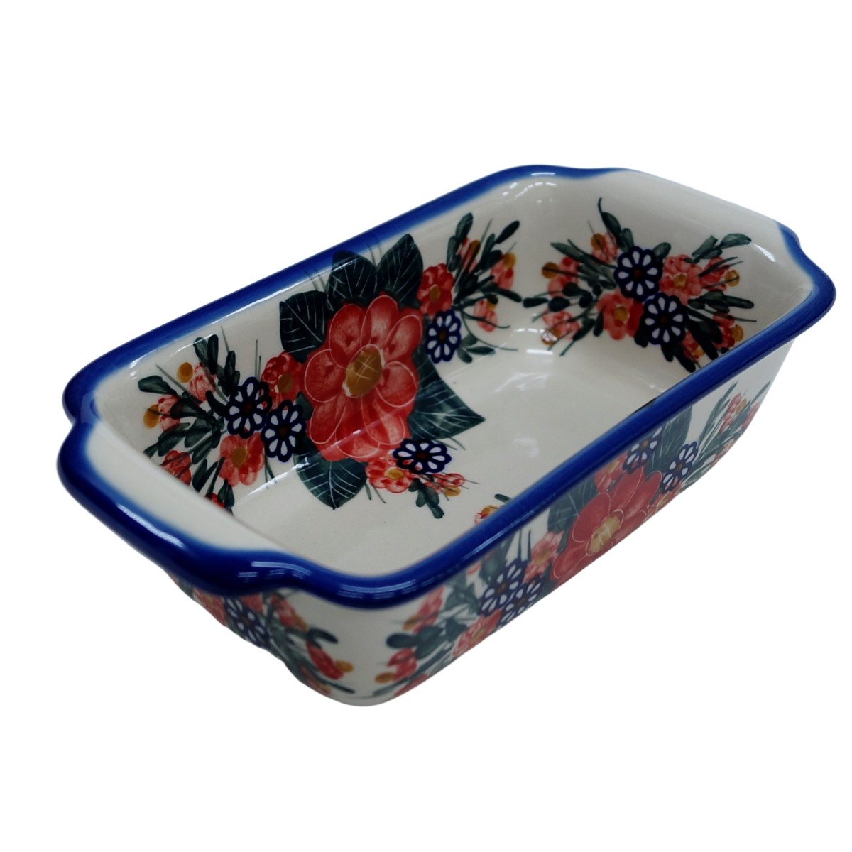 Oryginalny produkt ceramiki bolesławieckiej - ręcznie zdobiona forma ceramiczna z uszami do pieczenia chleba II, idealna do przygotowywania i zapiekania domowych wypieków, chlebów czy ciast oraz wszelkich pasztetów.