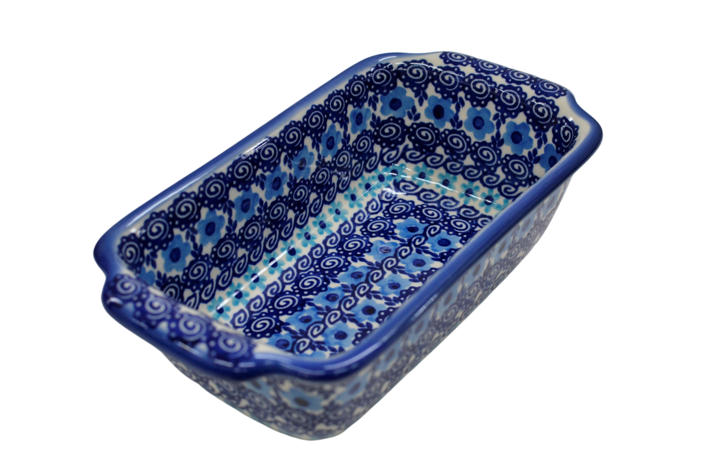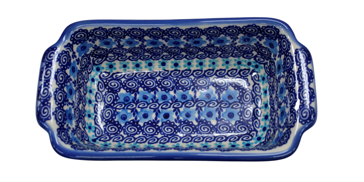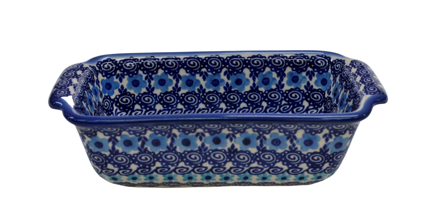 Oryginalny produkt ceramiki bolesławieckiej - ręcznie zdobiona forma ceramiczna z uszami do pieczenia chleba II, idealna do przygotowywania i zapiekania domowych wypieków, chlebów czy ciast oraz wszelkich pasztetów.