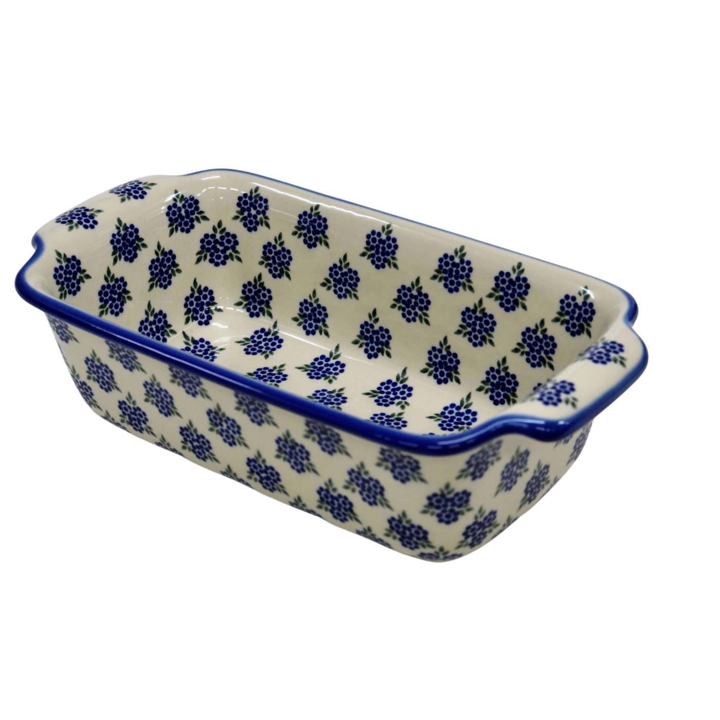 Oryginalny produkt ceramiki bolesławieckiej - ręcznie zdobiona forma ceramiczna z uszami do pieczenia chleba III duża, pojemności 1,3 litra , idealna do przygotowywania i zapiekania domowych wypieków, chlebów czy ciast oraz wszelkich pasztetów.