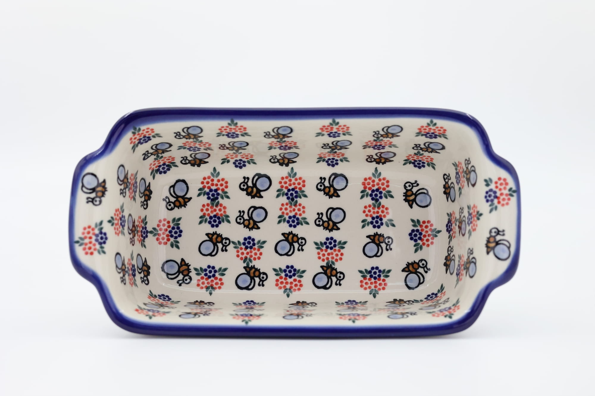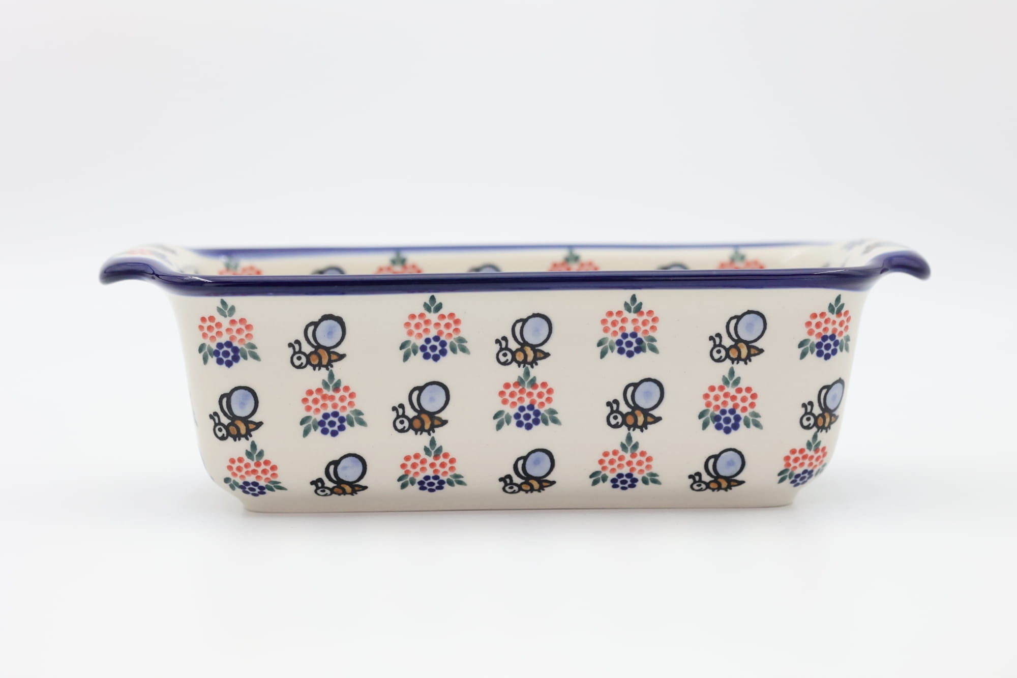 Oryginalny produkt ceramiki bolesławieckiej - ręcznie zdobiona forma ceramiczna z uszami do pieczenia chleba III duża, pojemności 1,3 litra , idealna do przygotowywania i zapiekania domowych wypieków, chlebów czy ciast oraz wszelkich pasztetów.