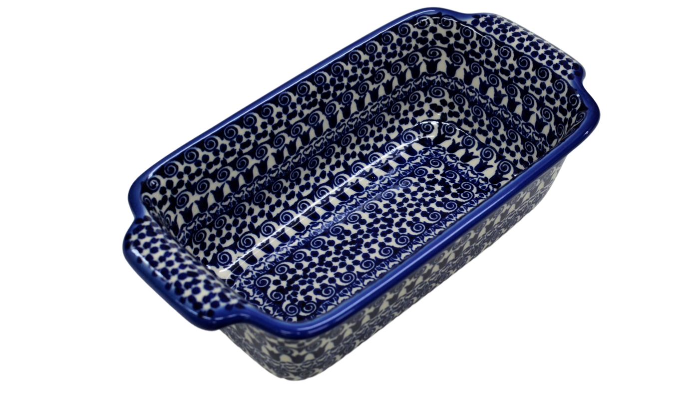 Oryginalny produkt ceramiki bolesławieckiej - ręcznie zdobiona forma ceramiczna z uszami do pieczenia chleba III duża, pojemności 1,3 litra , idealna do przygotowywania i zapiekania domowych wypieków, chlebów czy ciast oraz wszelkich pasztetów.