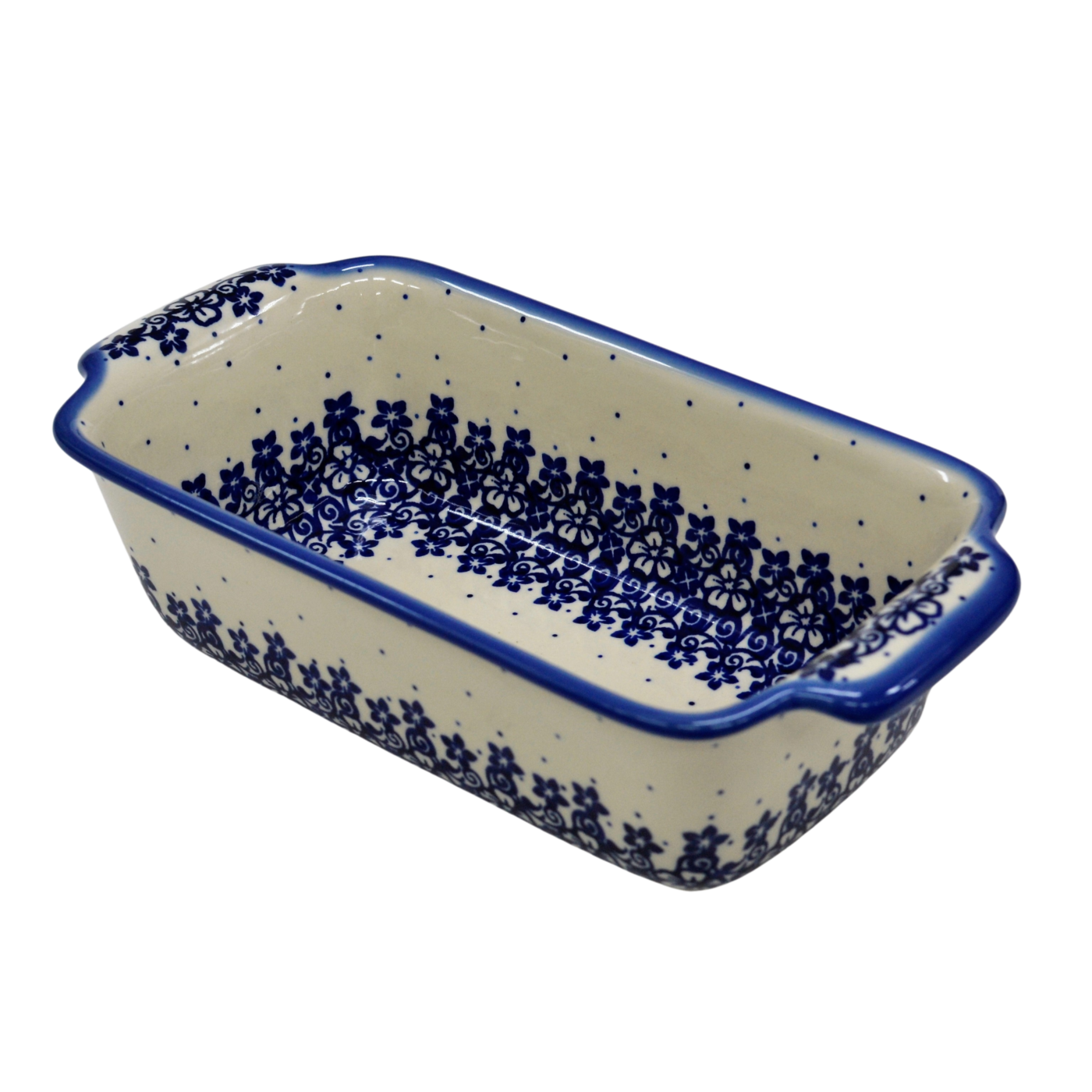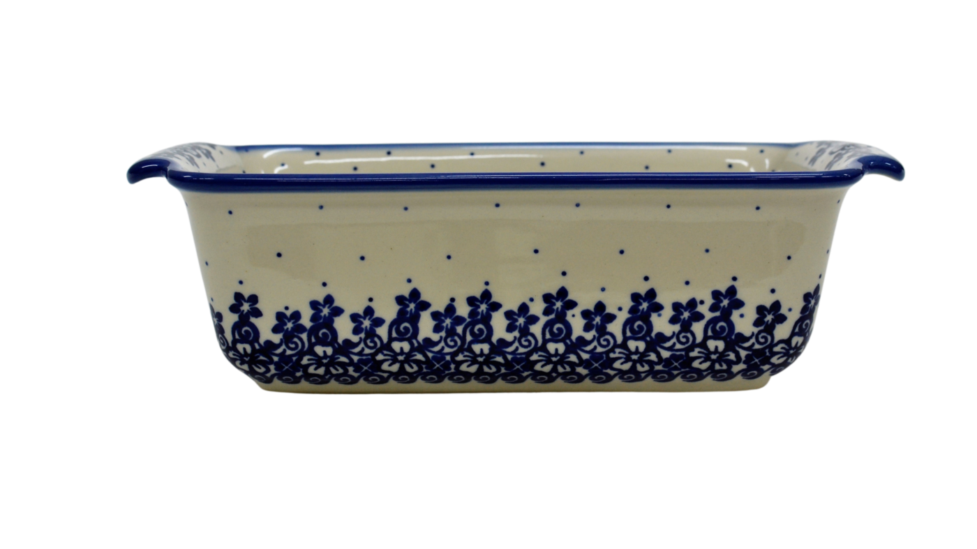 Oryginalny produkt ceramiki bolesławieckiej - ręcznie zdobiona forma ceramiczna z uszami do pieczenia chleba III duża, pojemności 1,3 litra , idealna do przygotowywania i zapiekania domowych wypieków, chlebów czy ciast oraz wszelkich pasztetów.