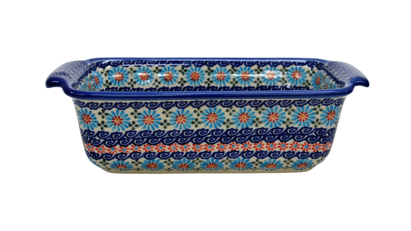 Oryginalny produkt ceramiki bolesławieckiej - ręcznie zdobiona forma ceramiczna z uszami do pieczenia chleba III duża, pojemności 1,3 litra , idealna do przygotowywania i zapiekania domowych wypieków, chlebów czy ciast oraz wszelkich pasztetów.