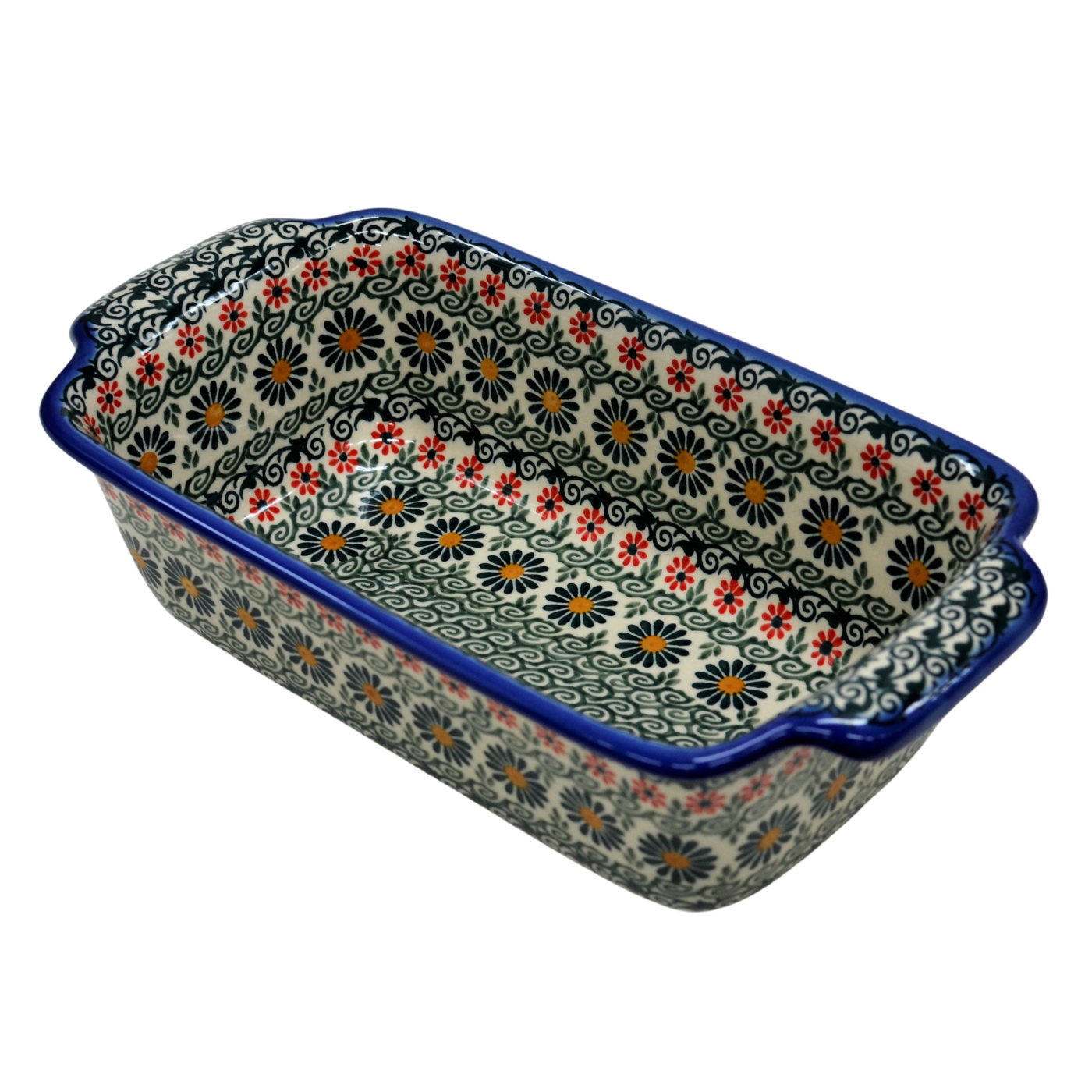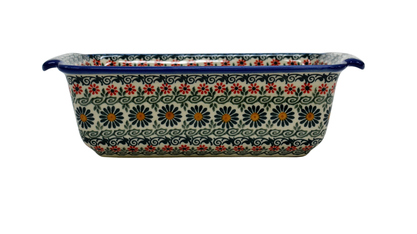 Oryginalny produkt ceramiki bolesławieckiej - ręcznie zdobiona forma ceramiczna z uszami do pieczenia chleba III duża, pojemności 1,3 litra , idealna do przygotowywania i zapiekania domowych wypieków, chlebów czy ciast oraz wszelkich pasztetów.
