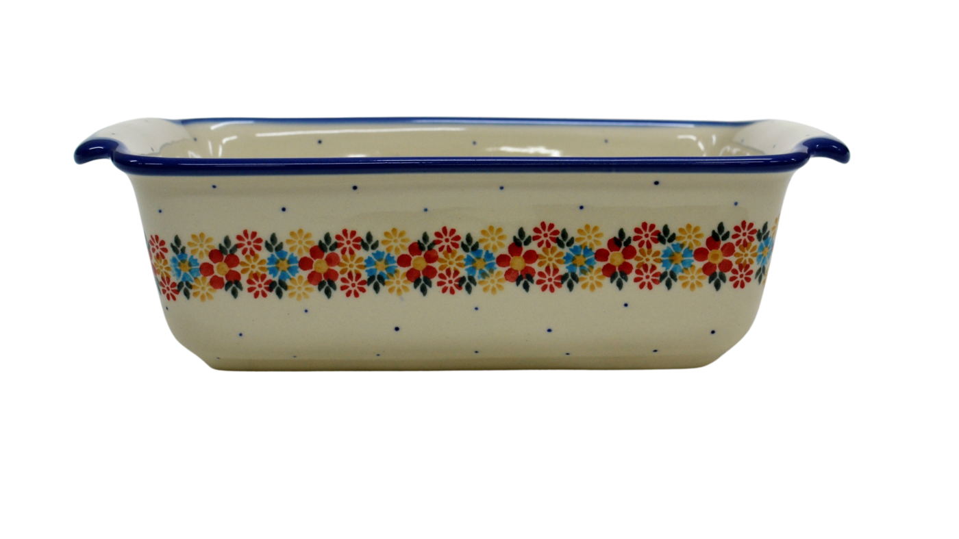 Oryginalny produkt ceramiki bolesławieckiej - ręcznie zdobiona forma ceramiczna z uszami do pieczenia chleba III duża, pojemności 1,3 litra , idealna do przygotowywania i zapiekania domowych wypieków, chlebów czy ciast oraz wszelkich pasztetów.