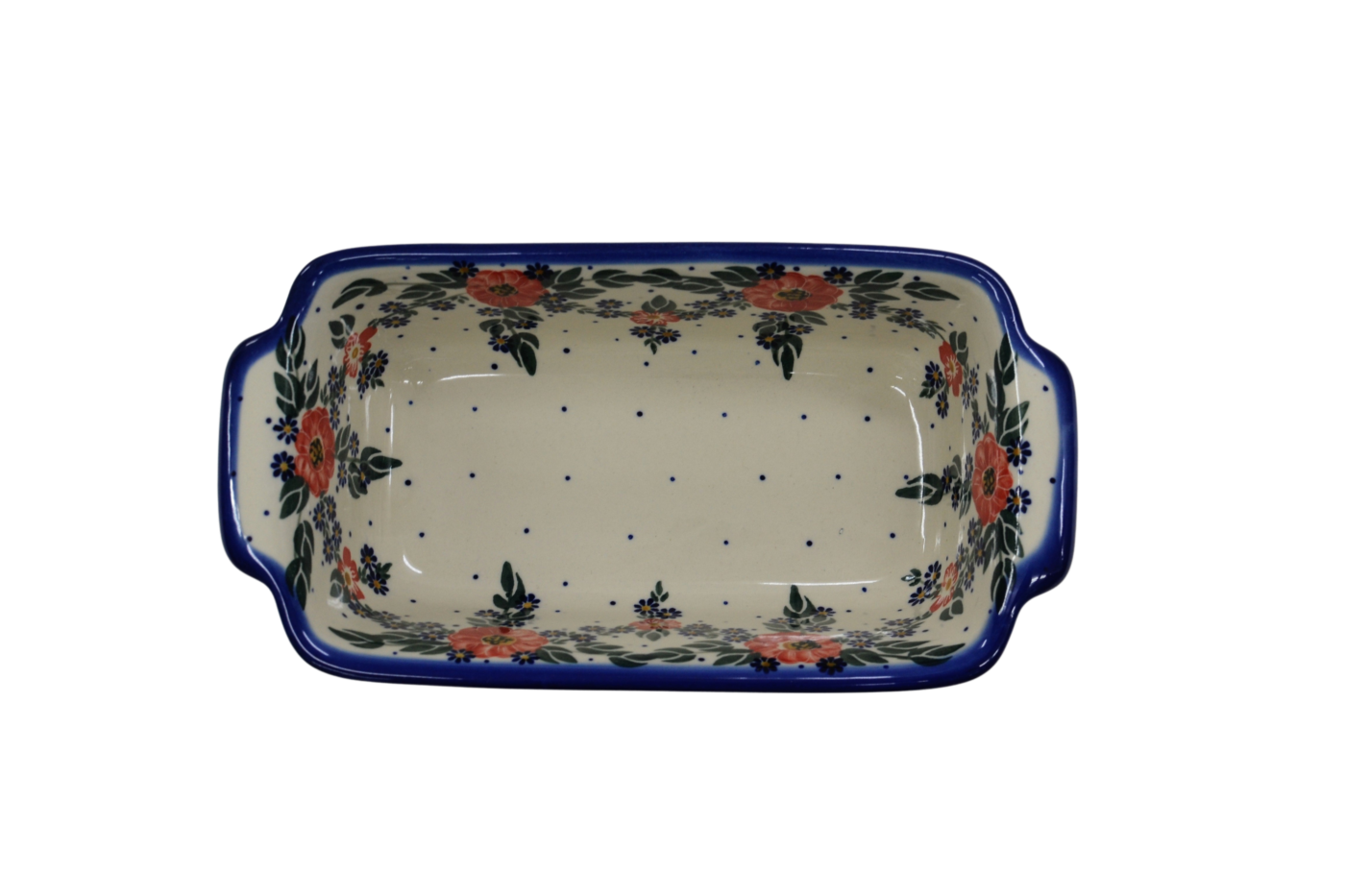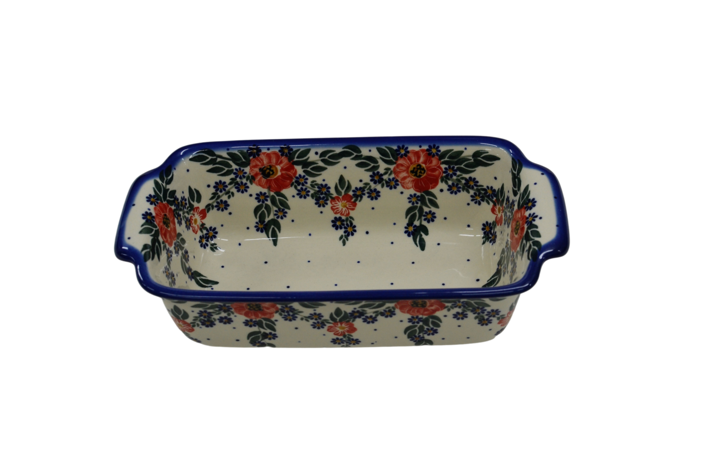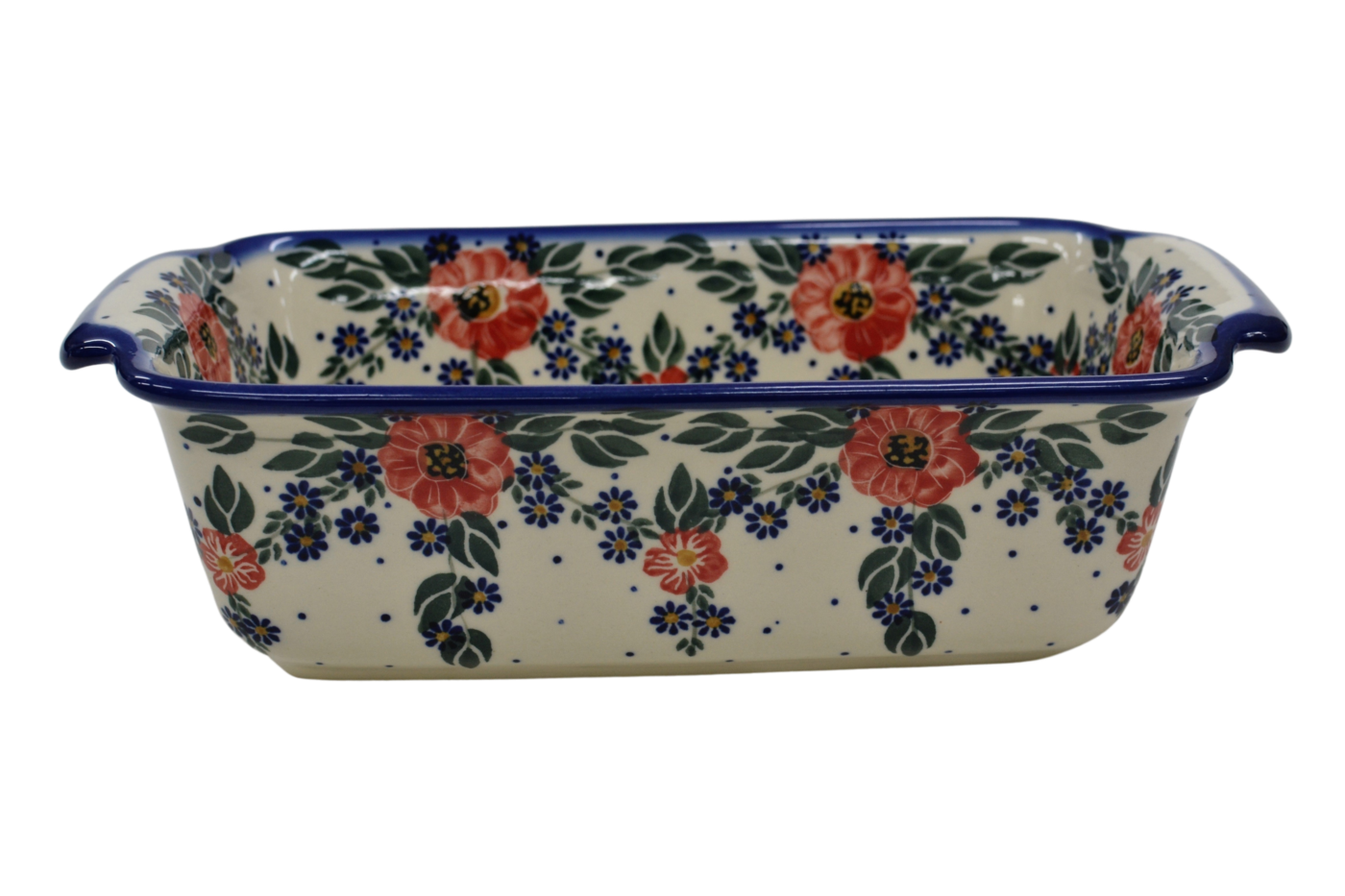 Oryginalny produkt ceramiki bolesławieckiej - ręcznie zdobiona forma ceramiczna z uszami do pieczenia chleba III duża, pojemności 1,3 litra , idealna do przygotowywania i zapiekania domowych wypieków, chlebów czy ciast oraz wszelkich pasztetów.