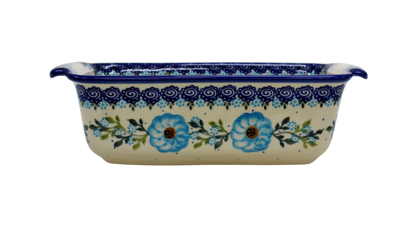 Oryginalny produkt ceramiki bolesławieckiej - ręcznie zdobiona forma ceramiczna z uszami do pieczenia chleba III duża, pojemności 1,3 litra , idealna do przygotowywania i zapiekania domowych wypieków, chlebów czy ciast oraz wszelkich pasztetów.