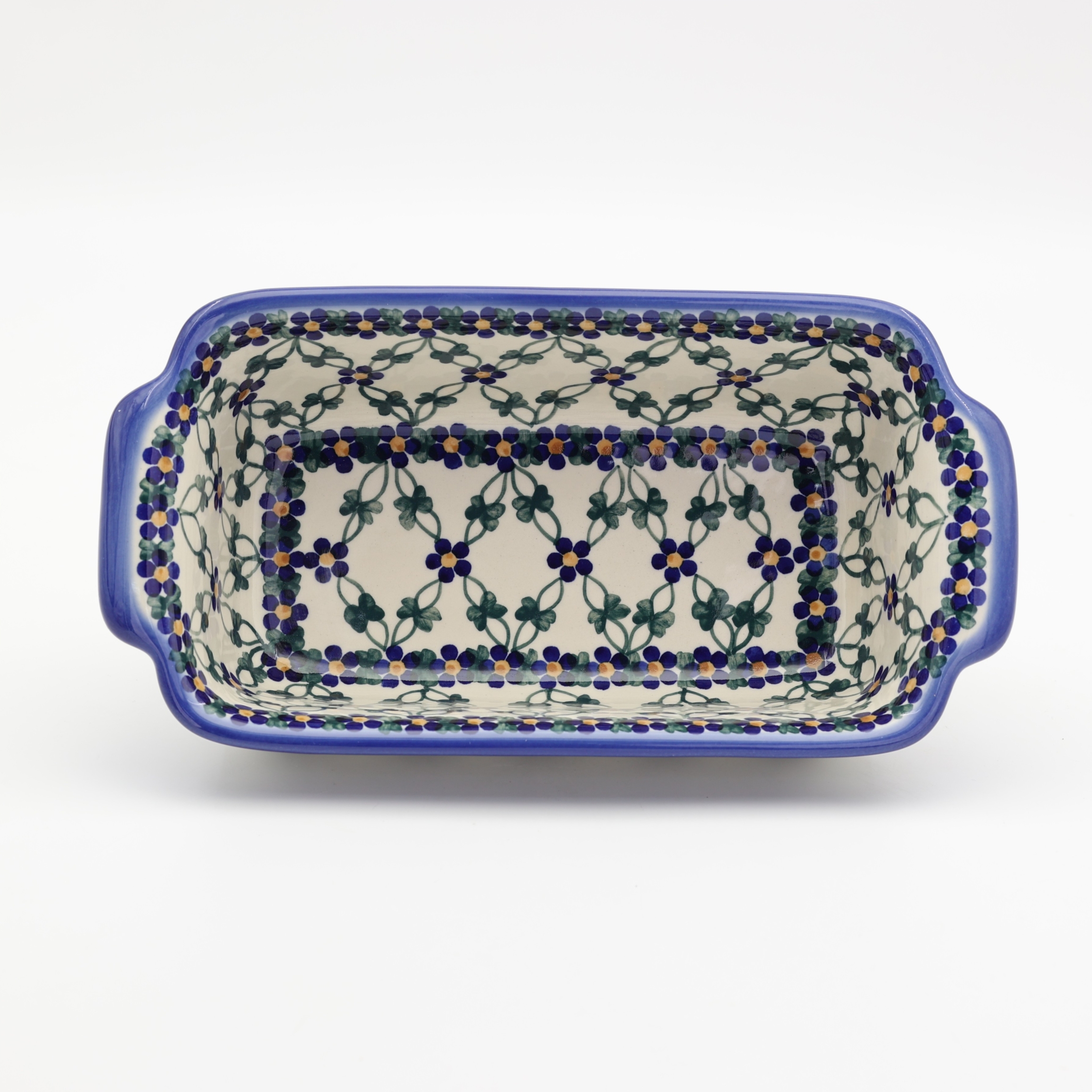 Oryginalny produkt ceramiki bolesławieckiej - ręcznie zdobiona forma ceramiczna z uszami do pieczenia chleba III duża, pojemności 1,3 litra , idealna do przygotowywania i zapiekania domowych wypieków, chlebów czy ciast oraz wszelkich pasztetów.