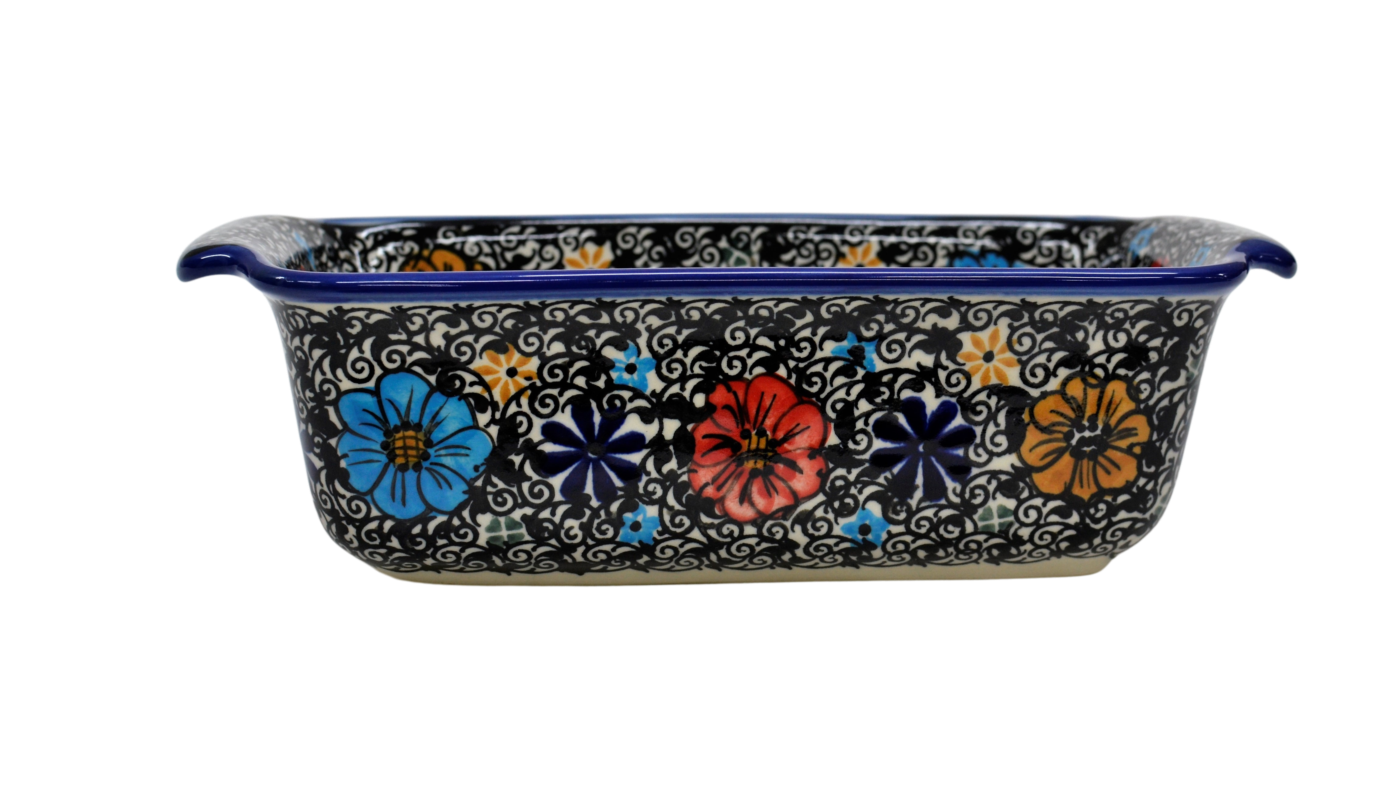 Forma ceramiczna do pieczenia chleba, zapiekania pasztetów jak i przygotowywania pysznych zapiekanek oraz wyrafinowanych dań warzywnych, będzie służyć w Twojej kuchni przez wiele lat. Barwne i oryginalne zdobienia podszkliwne stempelkowe i piękne motywy kwiatowe, nadadzą charakteru serwowanym posiłkom.