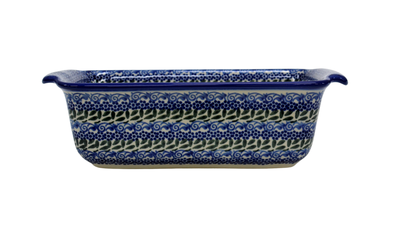 Oryginalny produkt ceramiki bolesławieckiej - ręcznie zdobiona forma ceramiczna z uszami do pieczenia chleba III duża, pojemności 1,3 litra , idealna do przygotowywania i zapiekania domowych wypieków, chlebów czy ciast oraz wszelkich pasztetów.
