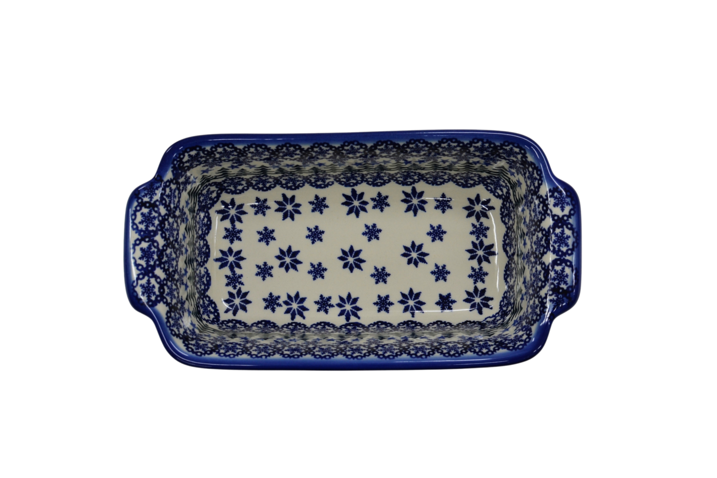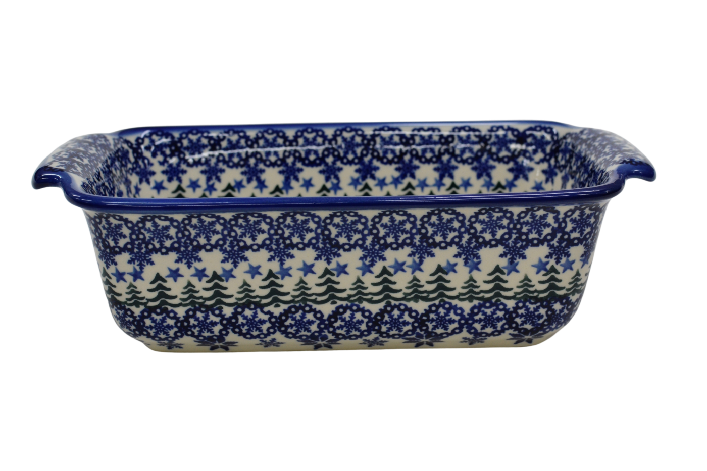 Oryginalny produkt ceramiki bolesławieckiej - ręcznie zdobiona forma ceramiczna z uszami do pieczenia chleba III duża, pojemności 1,3 litra , idealna do przygotowywania i zapiekania domowych wypieków, chlebów czy ciast oraz wszelkich pasztetów.