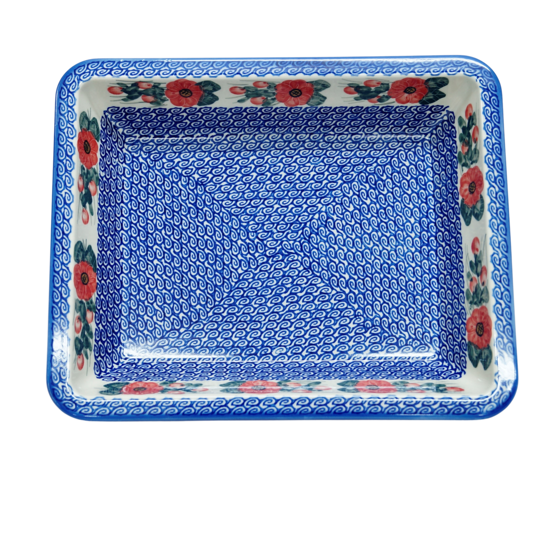 Szkliwione naczynia ceramiczne z Bolesławca to trwałość, jakość i wyjątkowo ślicznie zdobione produkty. Uzupełnij swoją zastawę stołową o piękną formę do zapiekania o prostokątnym kształcie z urokliwą i oryginalną linią brzegową, wywiniętej fali. Rant wywijany nadaje uroku i funkcjonalności, naczynie jest łatwe do przenoszenia - tak zwana krawędź-uchwyt, pomocny w użytkowaniu.
