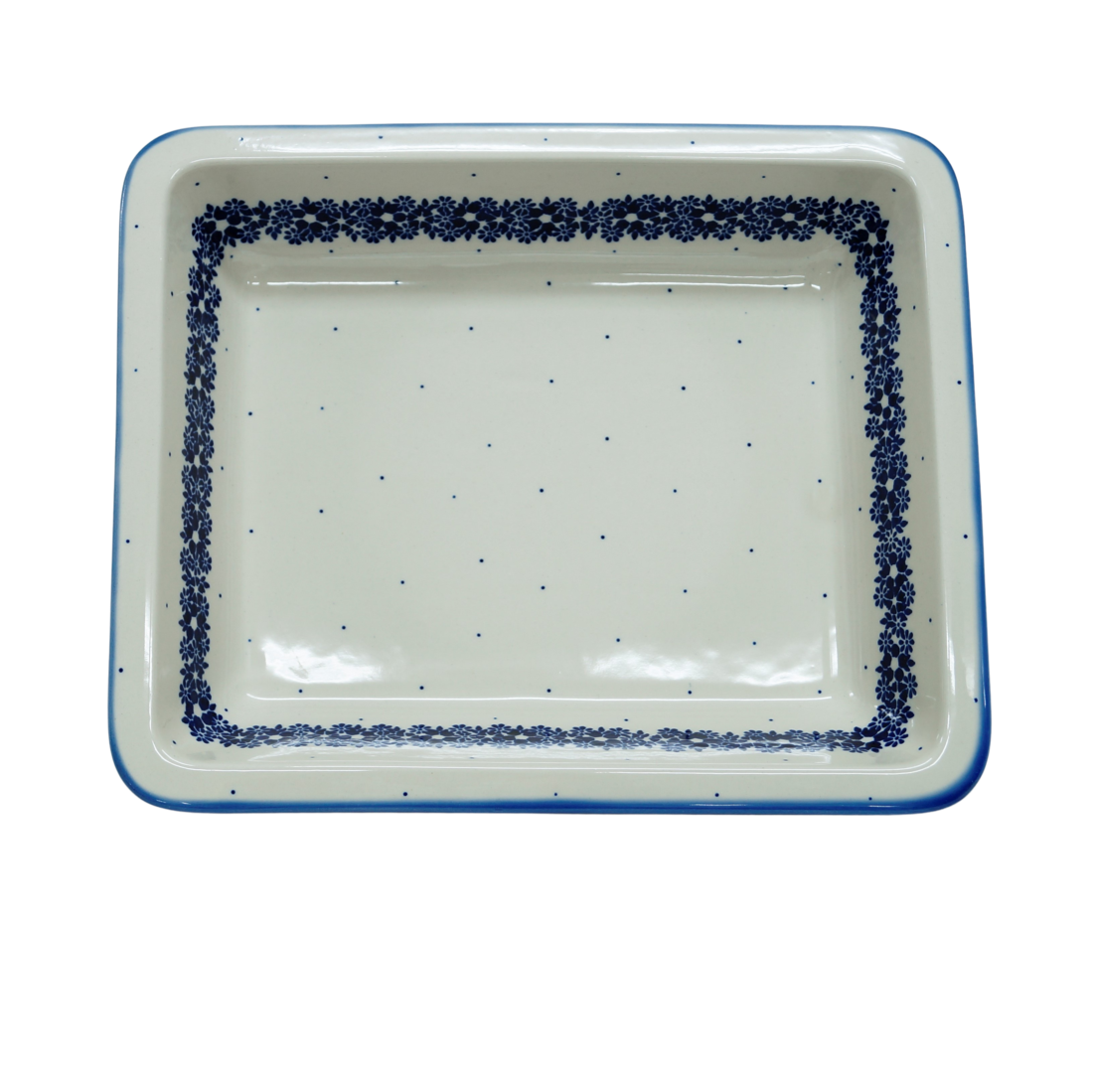 Szkliwione naczynia ceramiczne z Bolesławca to trwałość, jakość i wyjątkowo ślicznie zdobione produkty. Uzupełnij swoją zastawę stołową o piękną formę do zapiekania o prostokątnym kształcie z urokliwą i oryginalną linią brzegową, wywiniętej fali. Rant wywijany nadaje uroku i funkcjonalności, naczynie jest łatwe do przenoszenia - tak zwana krawędź-uchwyt, pomocny w użytkowaniu.
