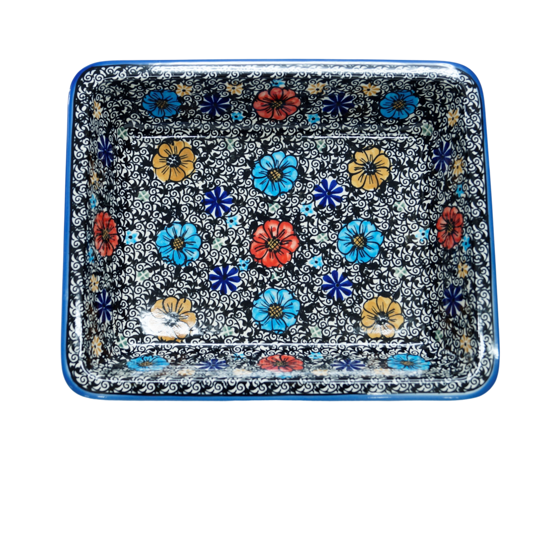 Szkliwione naczynia ceramiczne z Bolesławca to trwałość, jakość i wyjątkowo ślicznie zdobione produkty. Uzupełnij swoją zastawę stołową o piękną formę do zapiekania o prostokątnym kształcie z urokliwą i oryginalną linią brzegową, wywiniętej fali. Rant wywijany nadaje uroku i funkcjonalności, naczynie jest łatwe do przenoszenia - tak zwana krawędź-uchwyt, pomocny w użytkowaniu.