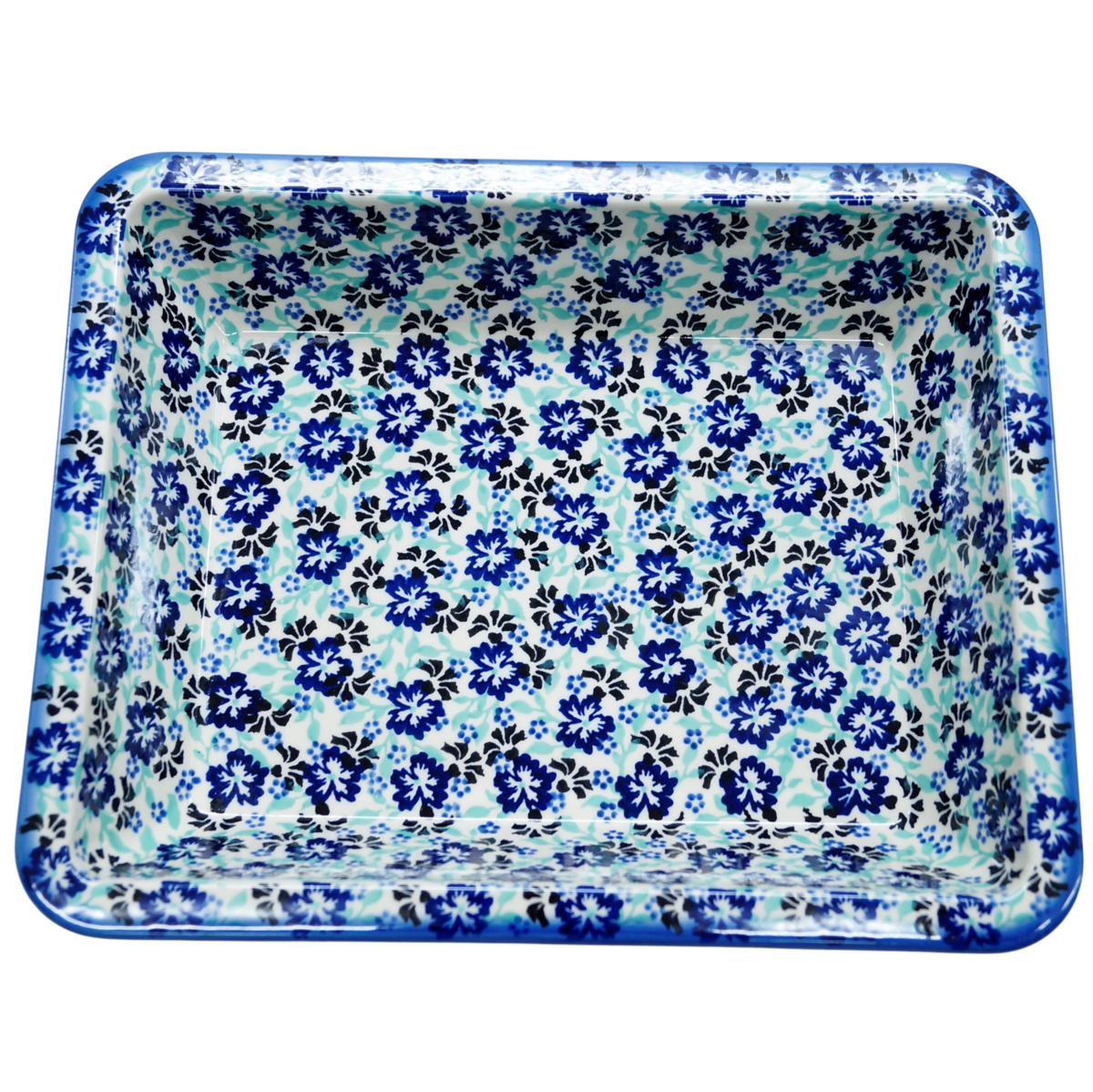 Szkliwione naczynia ceramiczne z Bolesławca to trwałość, jakość i wyjątkowo ślicznie zdobione produkty. Uzupełnij swoją zastawę stołową o piękną formę do zapiekania o prostokątnym kształcie z urokliwą i oryginalną linią brzegową, wywiniętej fali. Rant wywijany nadaje uroku i funkcjonalności, naczynie jest łatwe do przenoszenia - tak zwana krawędź-uchwyt, pomocny w użytkowaniu.