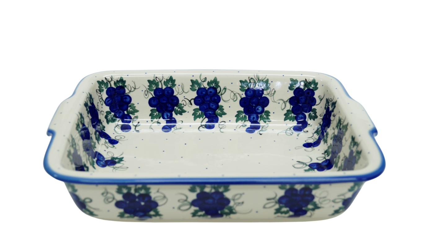 Szkliwione naczynia ceramiczne z Bolesławca to trwałość, jakość i wyjątkowo ślicznie zdobione produkty. Uzupełnij swoją zastawę stołową o piękną formę do zapiekania o prostokątnym kształcie z urokliwą i oryginalną linią brzegową. Rant wysunięty na zewnątrz nadaje uroku i funkcjonalności, naczynie jest łatwe do przenoszenia - tak zwana krawędź-uchwyt, pomocny w użytkowaniu, łatwiej przeniesiesz gorące naczynie prosto z piekarnika.