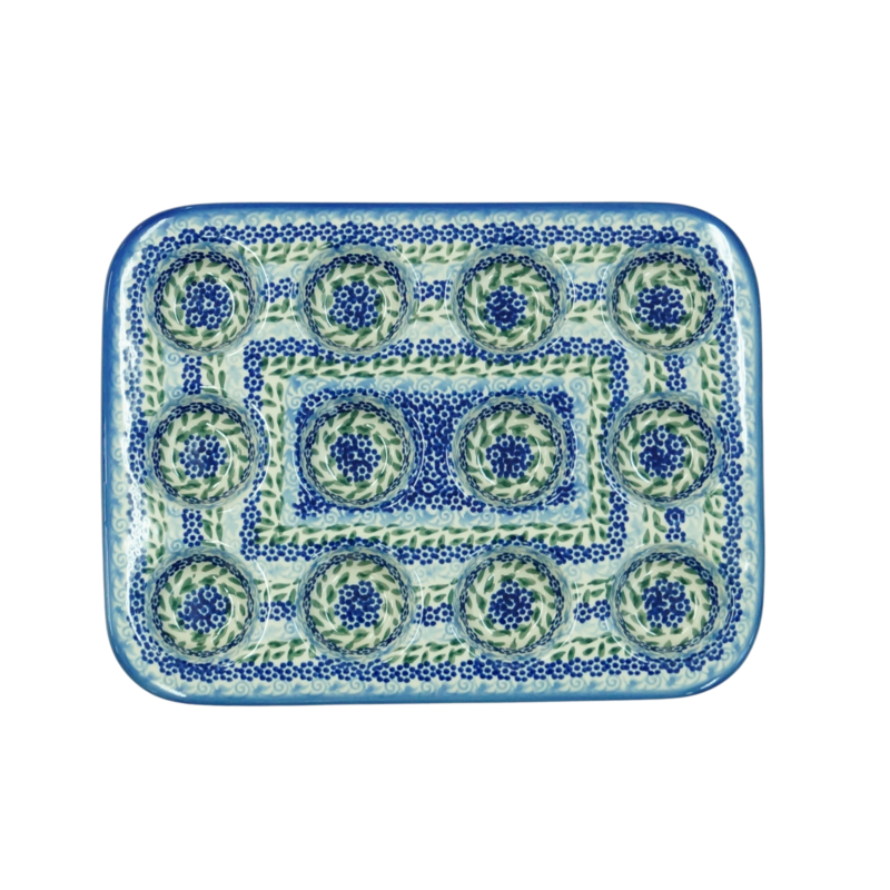 Oryginalny produkt ceramiki bolesławieckiej – naczynie do pieczenia babeczek, forma na muffiny (12 sztuk babeczek), umożliwia wypiekanie pysznych, słodkich domowych przysmaków uwielbianych przez dzieci i dorosłych. Babeczki staną się bardzo dobrze wypieczone dzięki właściwościom kamionki artystycznej z Bolesławca. Muffinki z dodatkiem kawałków mlecznej czekolady, owoców i kremu w towarzystwie ręcznie malowanych wzorów kwiatowych i stempelkowych posmakują zdecydowanie wyjątkowo subtelnie.