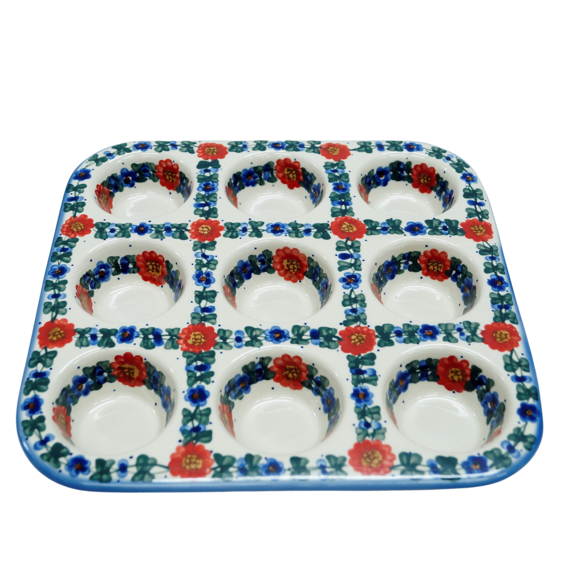 Oryginalny produkt ceramiki bolesławieckiej – naczynie do pieczenia babeczek, forma na muffiny (9 sztuk babeczek), umożliwia wypiekanie pysznych, słodkich domowych przysmaków uwielbianych przez dzieci i dorosłych. Babeczki staną się bardzo dobrze wypieczone dzięki właściwościom kamionki artystycznej z Bolesławca. Muffinki z dodatkiem kawałków mlecznej czekolady, owoców i kremu w towarzystwie ręcznie malowanych wzorów kwiatowych i stempelkowych posmakują zdecydowanie wyjątkowo subtelnie.