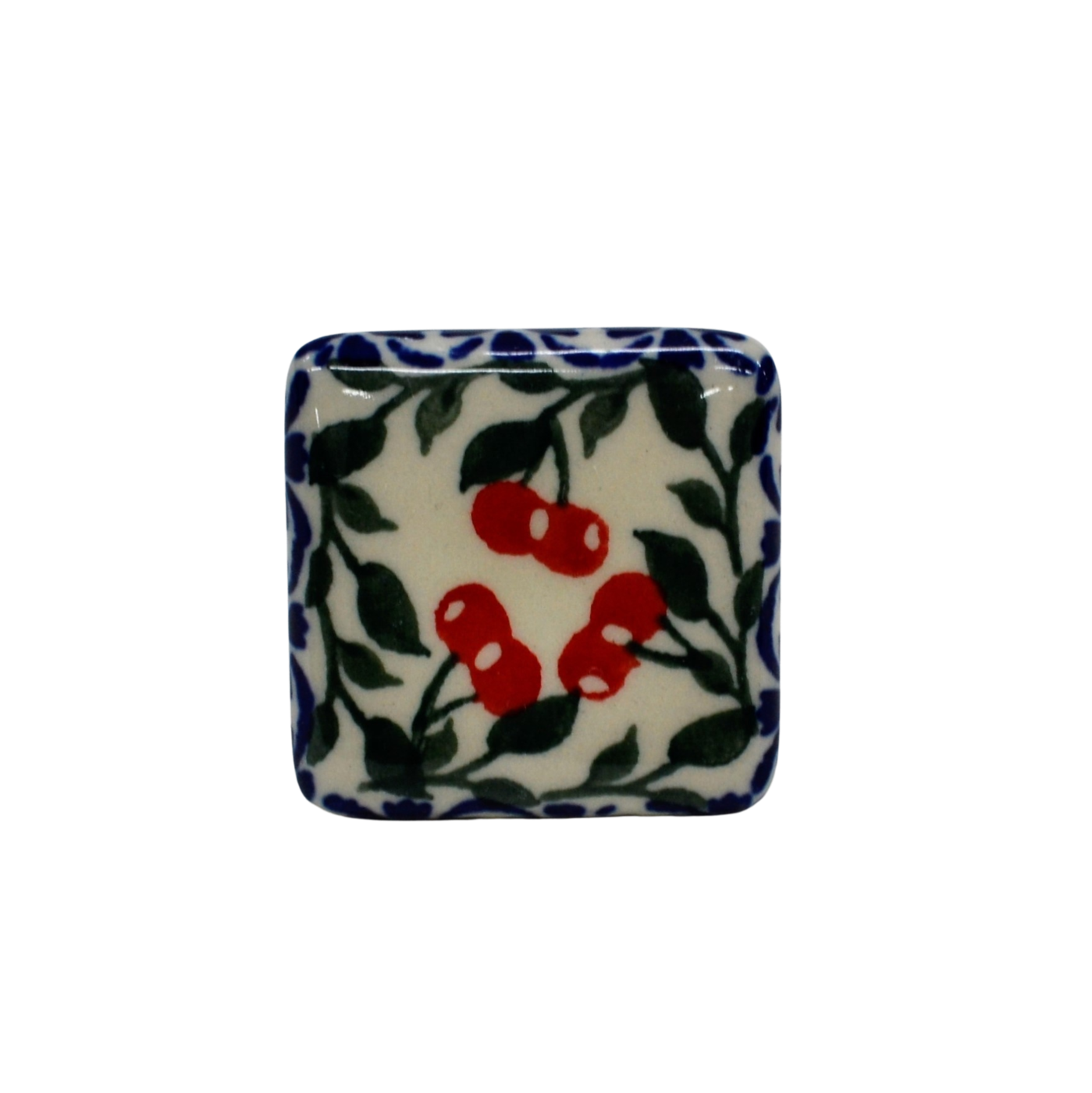 Oryginalny produkt ceramiki bolesławieckiej - gałka do szuflad kwadratowa, uchwyty meblowe, ręcznie malowane w rodzinnej fabryce oryginalnej kamionki bolesławieckiej, ANDY CERAMIKA.