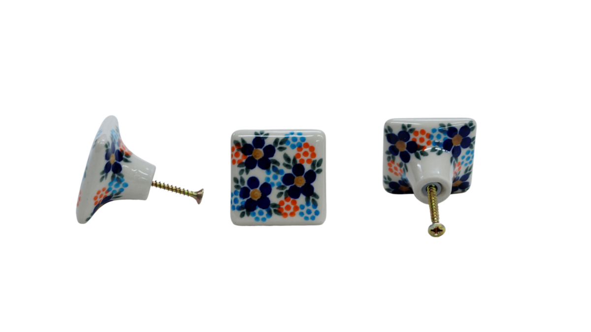 Oryginalny produkt ceramiki bolesławieckiej - gałka do szuflad kwadratowa, uchwyty meblowe, ręcznie malowane w rodzinnej fabryce oryginalnej kamionki bolesławieckiej, ANDY CERAMIKA.