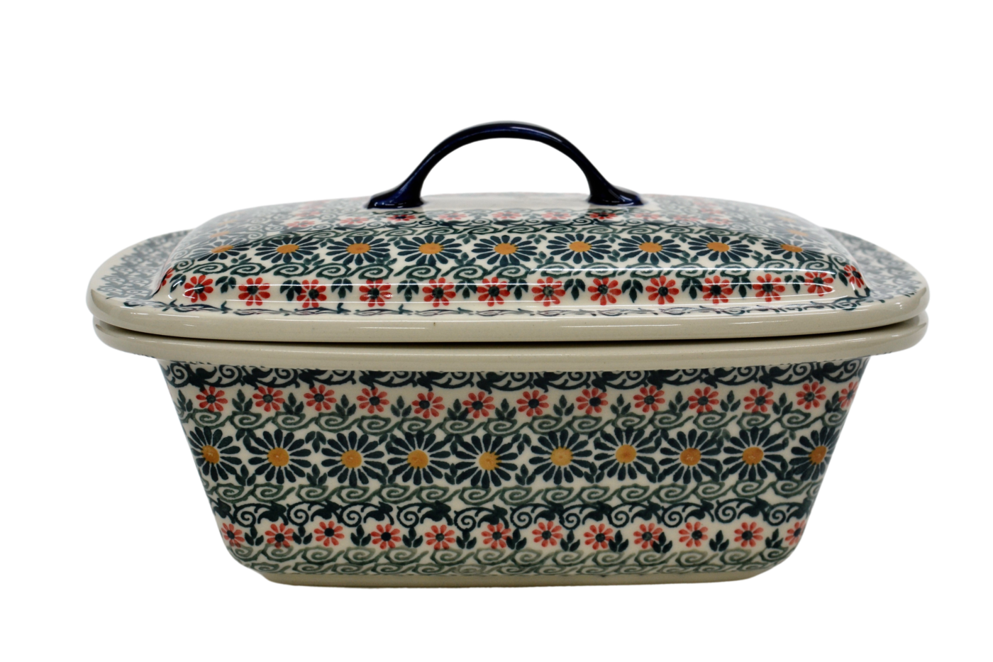 Produkt wykonany w bolesławieckiej manufakturze ceramiki użytkowej i dekoracyjnej. Naczynie ceramiczne posiada pokrywę z ergonomicznym uchwytem (uchem). Linia brzegowa naczynia zaprojektowana tak aby ułatwić przenoszenie rozgrzanego garnka, wystaje z każdej strony aby umożliwić bezpiecznie przenoszenie w rękawicach kuchennych gorącego naczynia (pamiętaj zachować ostrożność przy przenoszeniu gorących naczyń).