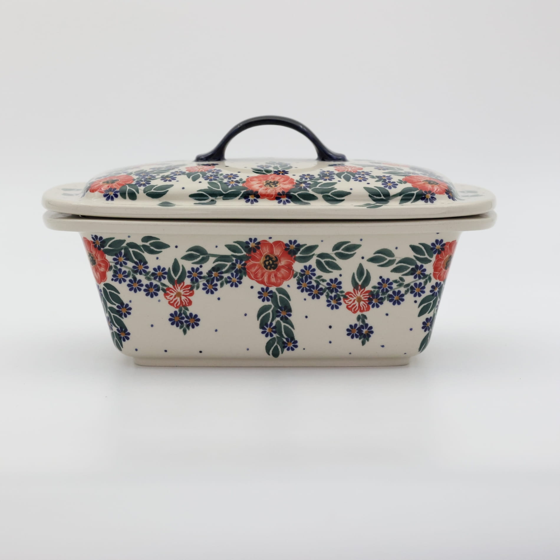Produkt wykonany w bolesławieckiej manufakturze ceramiki użytkowej i dekoracyjnej. Naczynie ceramiczne posiada pokrywę z ergonomicznym uchwytem (uchem). Linia brzegowa naczynia zaprojektowana tak aby ułatwić przenoszenie rozgrzanego garnka, wystaje z każdej strony aby umożliwić bezpiecznie przenoszenie w rękawicach kuchennych gorącego naczynia (pamiętaj zachować ostrożność przy przenoszeniu gorących naczyń).