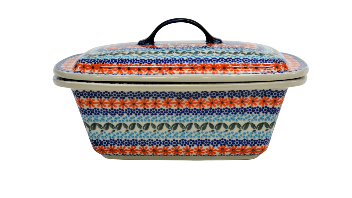 Produkt wykonany w bolesławieckiej manufakturze ceramiki użytkowej i dekoracyjnej. Naczynie ceramiczne posiada pokrywę z ergonomicznym uchwytem (uchem). Linia brzegowa naczynia zaprojektowana tak aby ułatwić przenoszenie rozgrzanego garnka, wystaje z każdej strony aby umożliwić bezpiecznie przenoszenie w rękawicach kuchennych gorącego naczynia (pamiętaj zachować ostrożność przy przenoszeniu gorących naczyń).