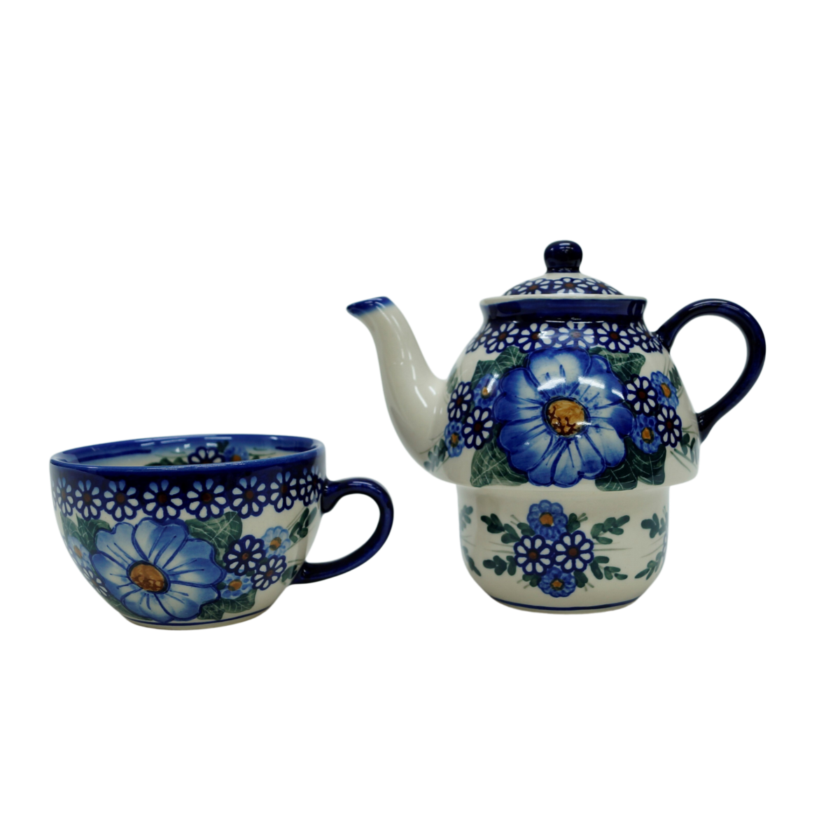 Imbryk ceramiczny z filiżanką prosto z Bolesławca, z rodzinnej wytwórni ceramiki bolesławieckiej, marki ANDY CERAMIKA. Stworzony do oryginalnego serwowania herbaty i kawy. Swój ulubiony gorący napój sporządzić możesz w czajniku, a następnie przenieść go w wygodny sposób. Rozsiadając się w fotelu, bądź na kanapie wystarczy nalać napój do filiżanki wyjętej spod imbryka i rozkoszować się chwila. Prawda że wyjątkowo łatwo przenieść filiżankę z czajnikiem? Staramy się sprostać Państwa największym oczekiwaniom i tworzymy ceramikę przemyślanie, tak aby nie tylko cieszyła oko swoim charakterem i stylem zdobienia a łatwością użytkowania podczas podstawowych czynności dnia.