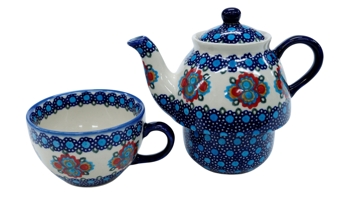 Imbryk ceramiczny z filiżanką prosto z Bolesławca, z rodzinnej wytwórni ceramiki bolesławieckiej, marki ANDY CERAMIKA. Stworzony do oryginalnego serwowania herbaty i kawy. Swój ulubiony gorący napój sporządzić możesz w czajniku, a następnie przenieść go w wygodny sposób. Rozsiadając się w fotelu, bądź na kanapie wystarczy nalać napój do filiżanki wyjętej spod imbryka i rozkoszować się chwila. Prawda że wyjątkowo łatwo przenieść filiżankę z czajnikiem? Staramy się sprostać Państwa największym oczekiwaniom i tworzymy ceramikę przemyślanie, tak aby nie tylko cieszyła oko swoim charakterem i stylem zdobienia a łatwością użytkowania podczas podstawowych czynności dnia.