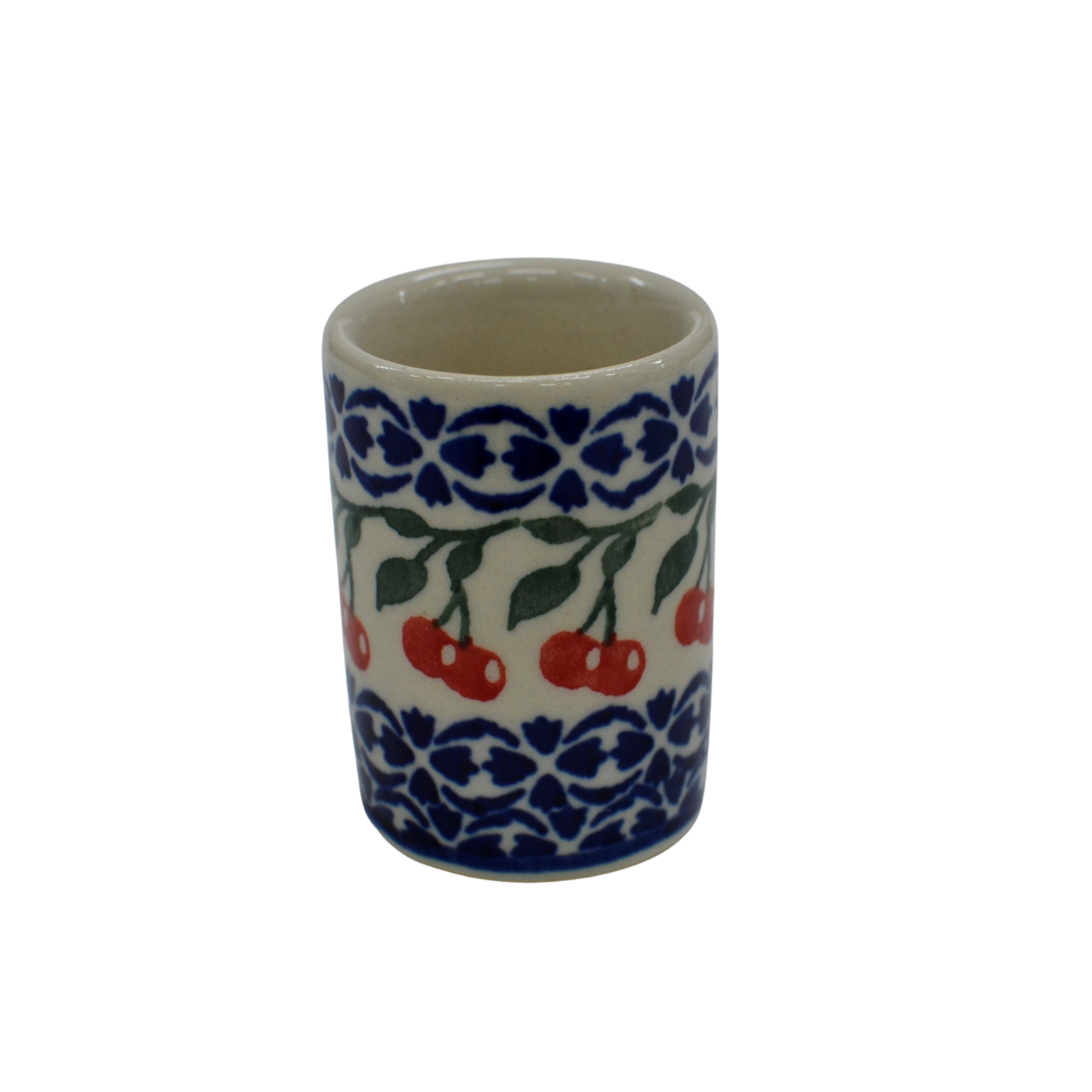 Kieliszek ceramiczny duży o pojemności 75 ml, do wódki i likieru, wyprodukowany w Bolesławcu, w zakładzie ceramiki artystycznej. Ceramiczny kieliszek. lekko rozszerzany górą, kieliszek na mocne trunki oraz nalewki.